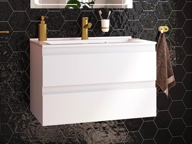 - Krom greb i begge skuffer - Soft close i skuffer - Skarpe linjer