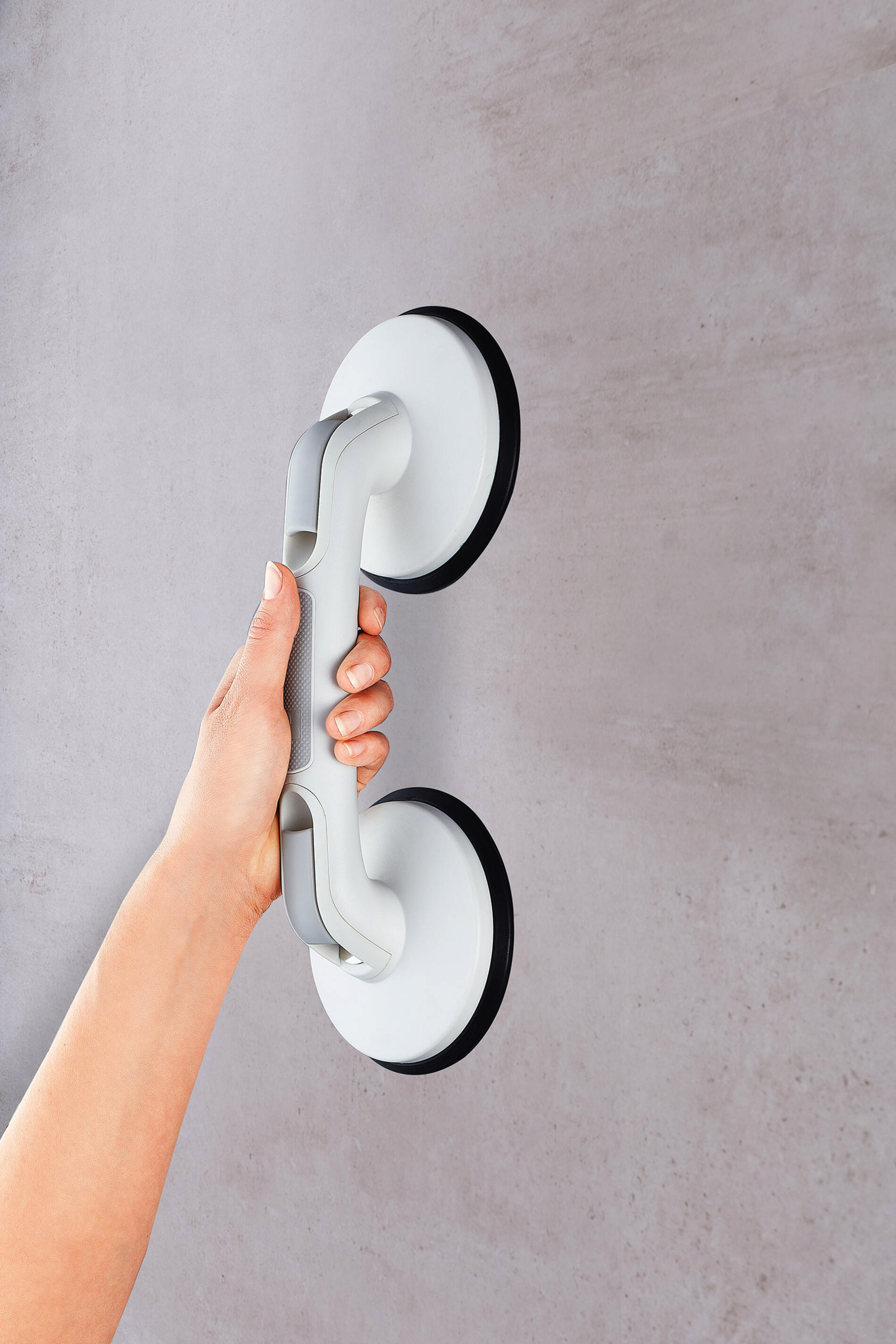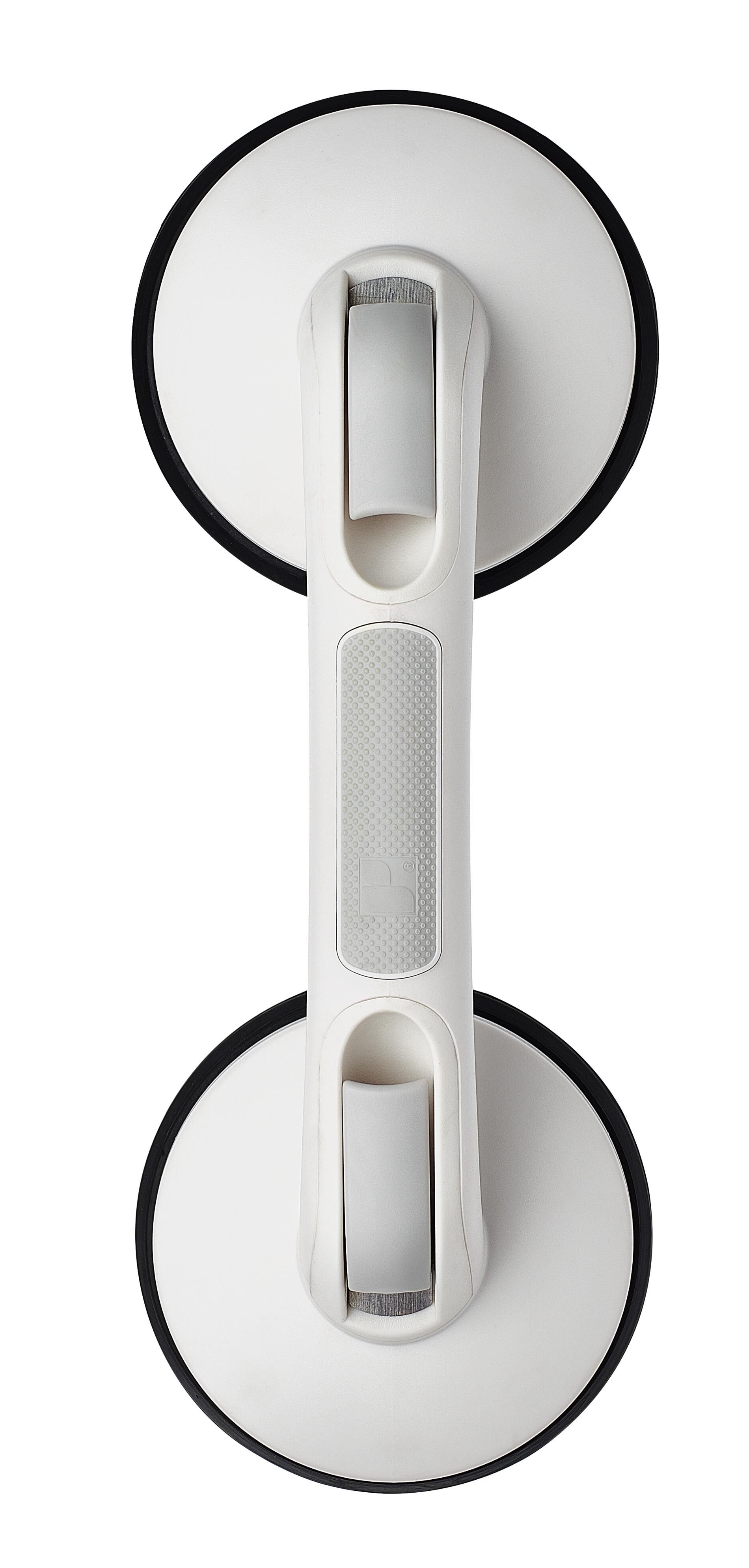 Med sit let rengørbare design og kompakte form er håndgrebet perfekt til rejser, så du altid kan tage sikkerheden med dig. Den tidløse hvide farve sikrer, at det smelter sammen med enhver badeværelsesindretning. Håndgrebet måler 33 cm i længden, og de imponerende sugekopper har en diameter på 12,5 cm, hvilket garanterer en stabil og sikker fastgørelse. Med en maksimal bæreevne på 80 kg kan du stole på, at dette håndgreb giver dig den støtte, du har brug for, når du bevæger dig rundt i badeværelset.