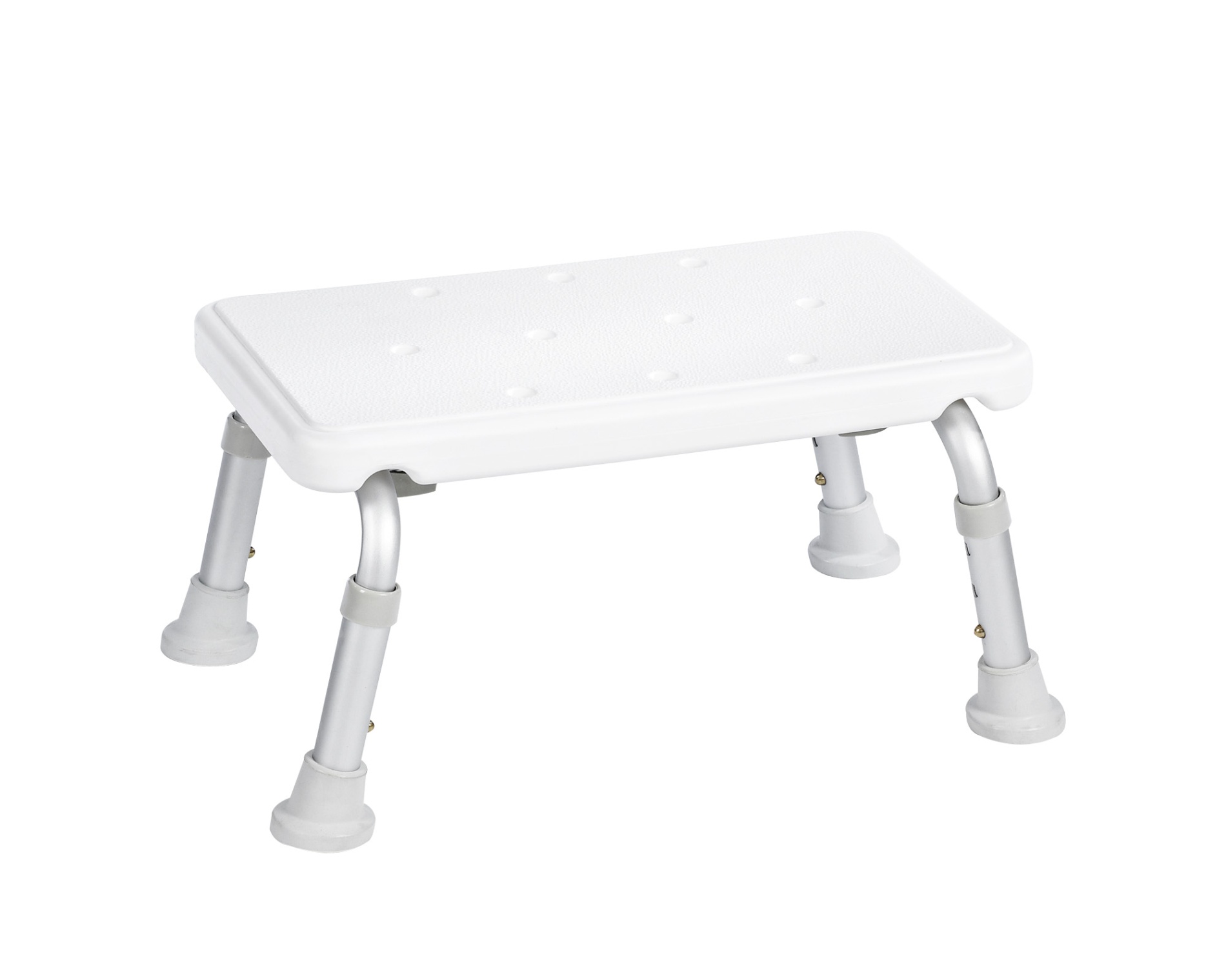 Denne højdejusterbare skammel fra RIDDER gør det nemt at klare forskellige opgaver i badeværelset. Den er designet til at være robust og er ideel til sikker ind- og udstigning af badekarret, nå høje spejle eller skabe, eller som en praktisk fodstøtte ved toilettet. Trinets rummelige overflade har en skridsikker belægning med drænhuller, og den anodiserede aluminiumsramme sikrer høj modstandsdygtighed mod rust. De store, stabile fødder holder skamlen sikkert på plads, selv på fugtige overflader, hvilket giver både bekvemmelighed og sikkerhed. Skamlen måler 50 x 33 cm, har en justerbar højde fra 20,6 til 25,4 cm og kan bære op til 150 kg.