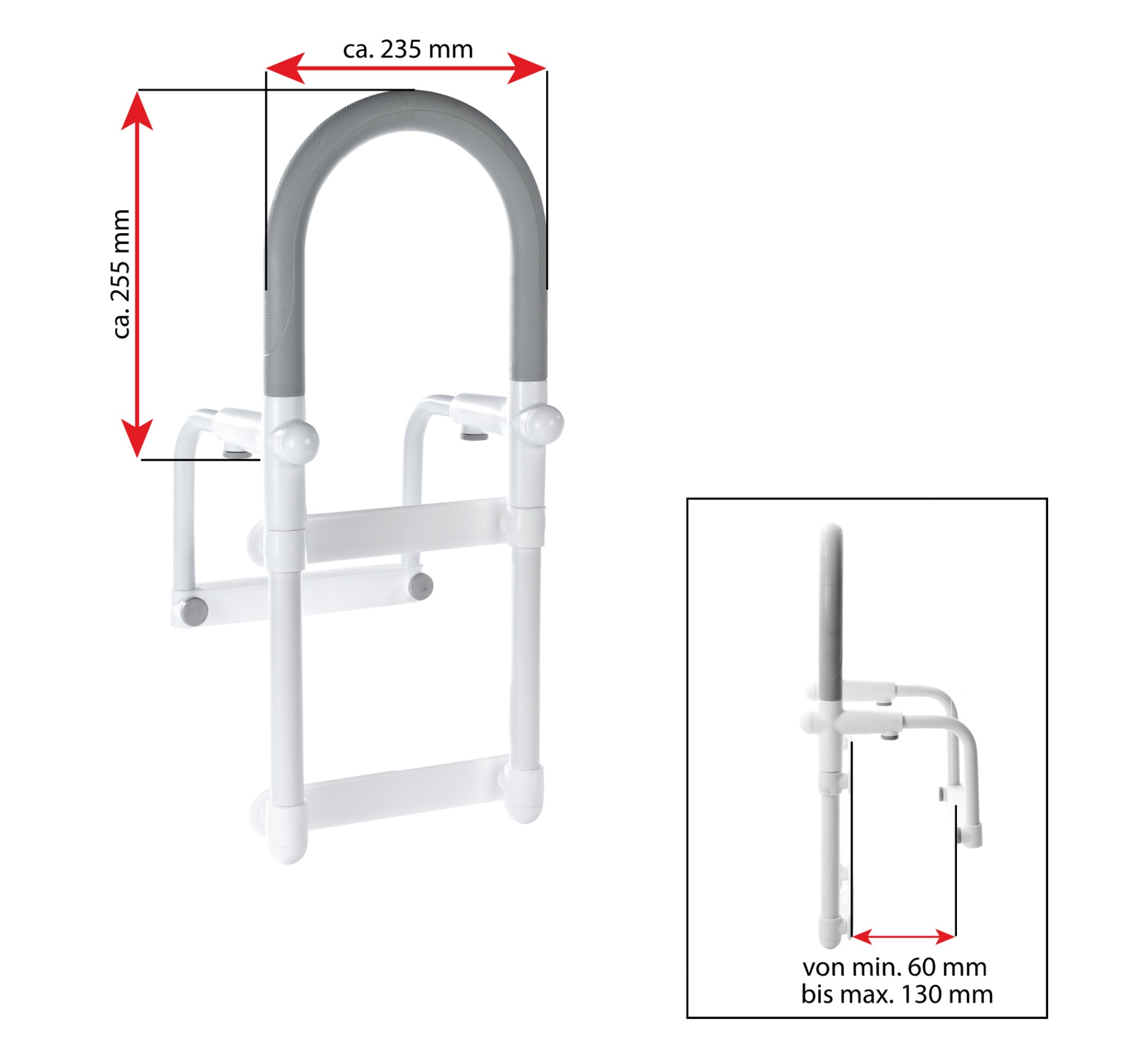 Dette badekarsgreb er din praktiske hjælper, der giver dig mulighed for selvstændigt at bruge dit badekar. Badekarsgrebet er brugbart ved ind- og udstigning af badekaret, og det har et skridsikker greb, der øger sikkerheden ved brug. Grebet er lavet af aluminium og plastik, og det kan bruges på badekar med en vægtykkelse på 6-13 cm. Badekargrebet er testet op til en kropsvægt på 110 kg.