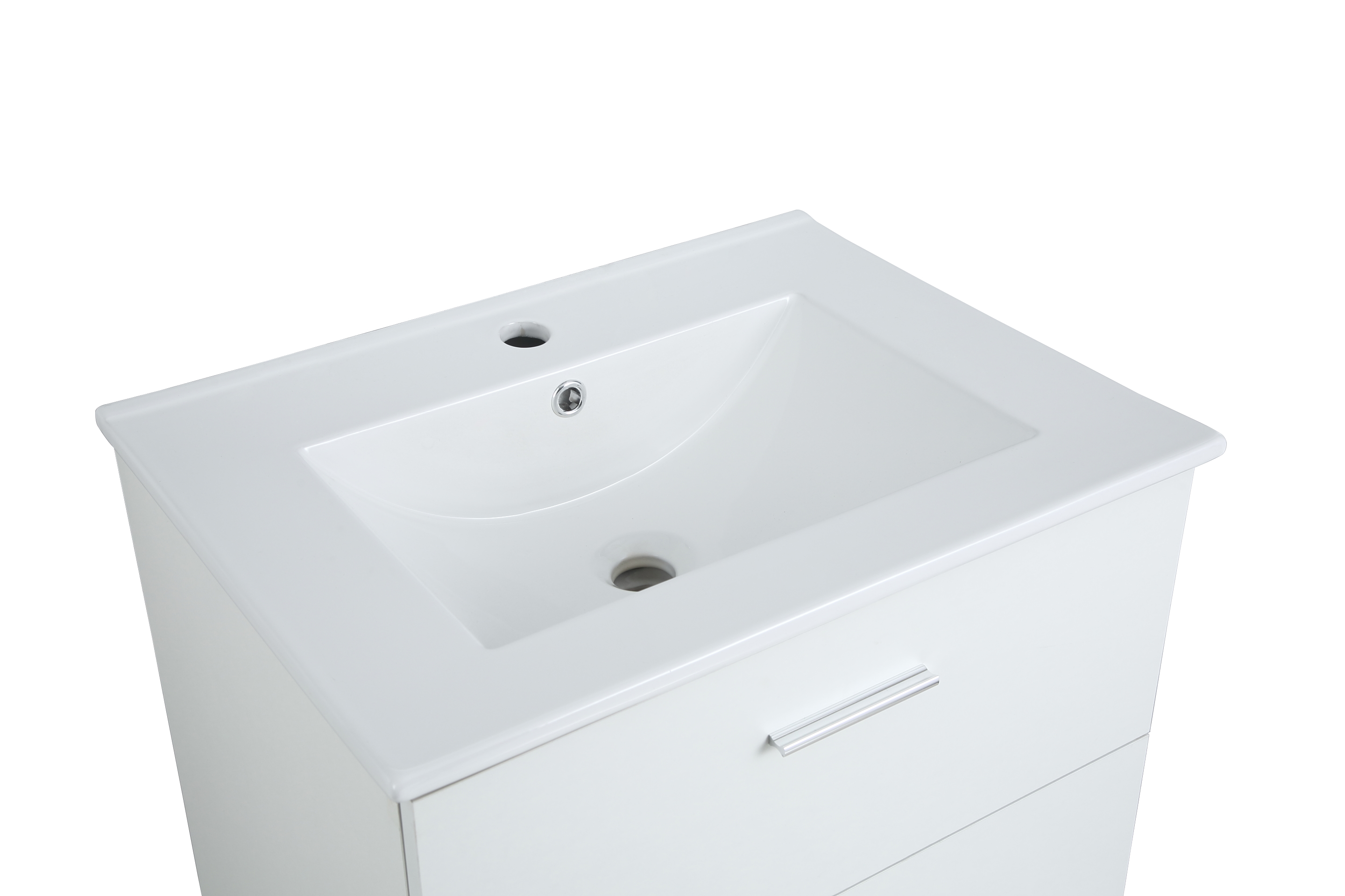 Sættet leveres som ”one-box” og inkluderer et underskab, hvor du nemt kan opbevare alle dine baderumsartikler, en matchende hvid vask, der komplementerer stilen, samt et håndtag, der gør det nemt at åbne møblerne.