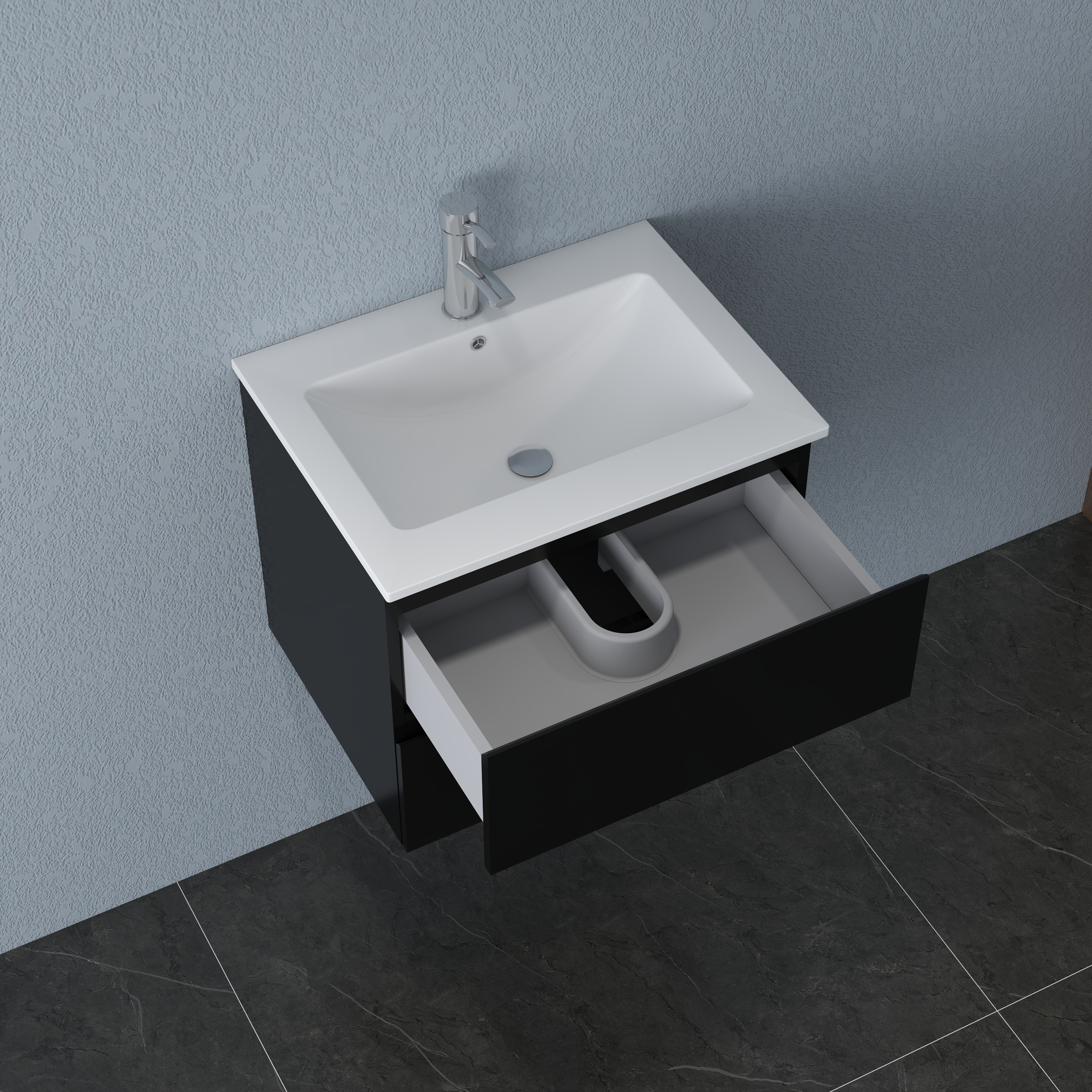 De flotte designgreb og de skarpe kanter giver møbelsættet et moderne touch, der kombinerer smart opbevaring med et elegant og tidssvarende udtryk, perfekt til både de mindre og store badrum.