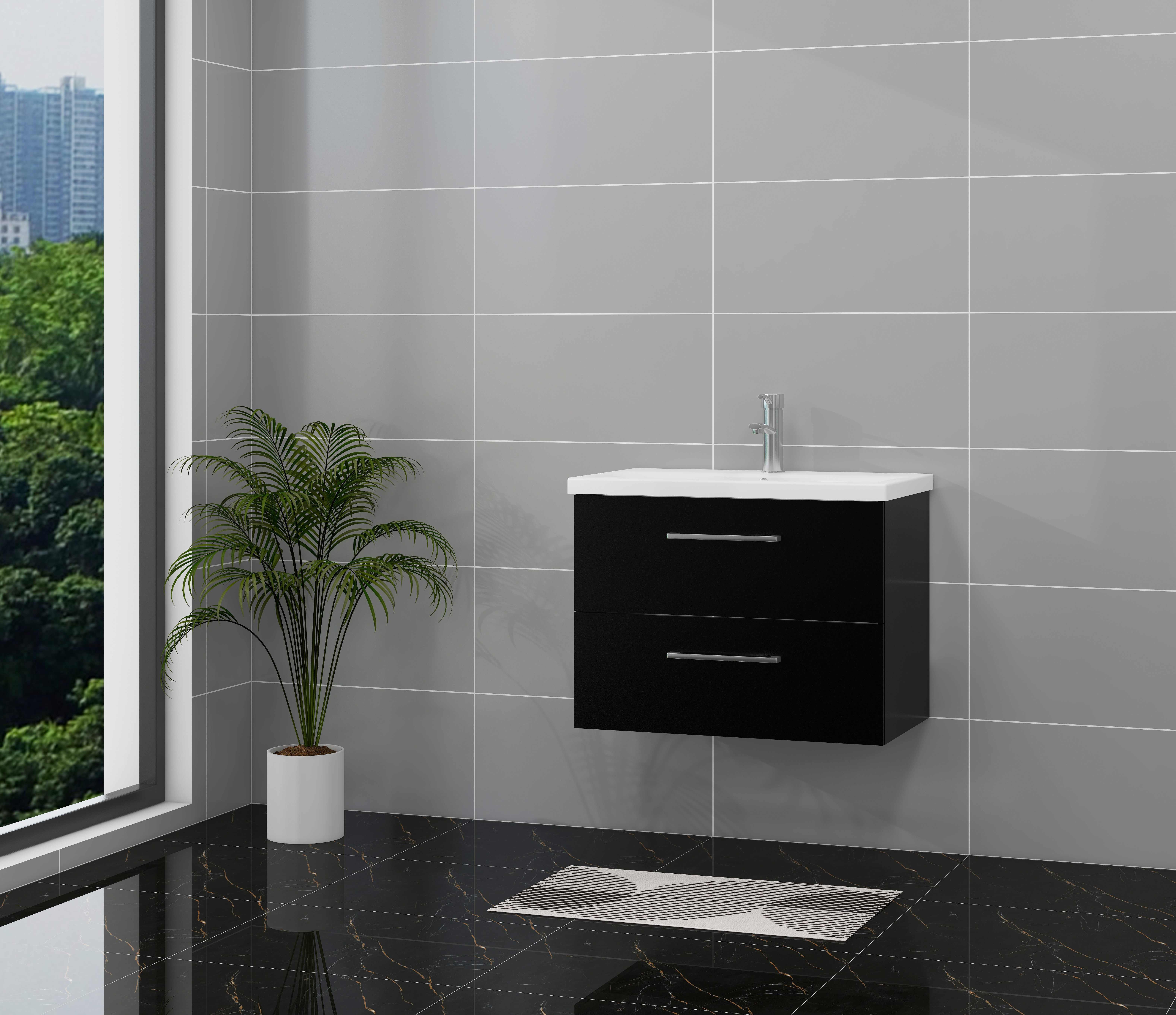 Nortiq Nevada badmøblet i One Box-udgave er den perfekte alt-i-en-løsning til dit badeværelse, hvor alt følger med for en nem og stilren indretning. I denne pakke får du både en elegant porcelænshåndvask, et flot kabinet og ophæng, så du nemt kan montere det hele.