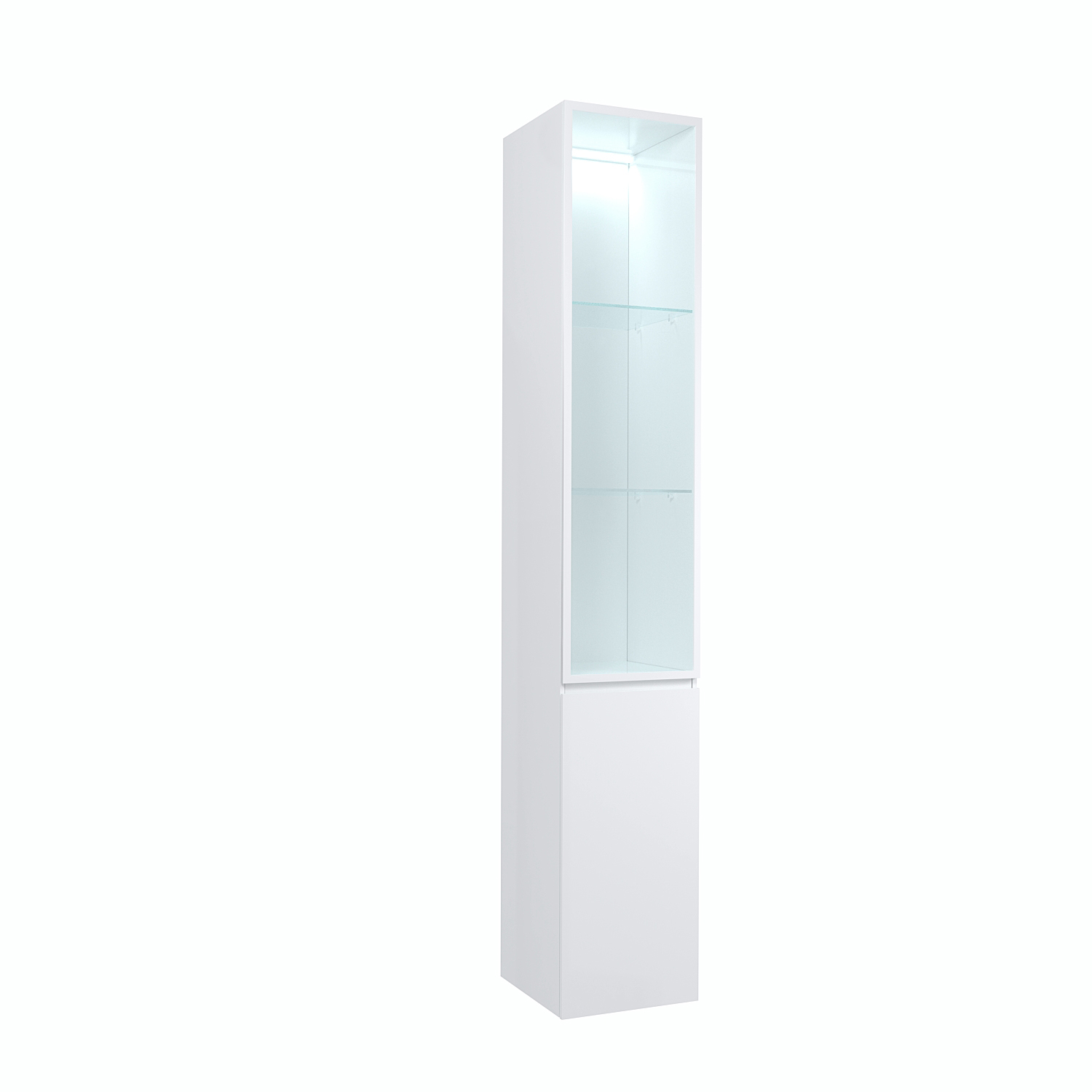 Nortiq Oscar højskab forener praktisk opbevaring med et stilfuldt design, hvor den elegante låge med designgreb skaber et rent og moderne udtryk, mens de tre åbne hylder, heraf to i glas, tilfører lethed og et eksklusivt præg, så du får et højskab der giver dig både funktionalitet og et badeværelse indrettet med sans for detaljer.