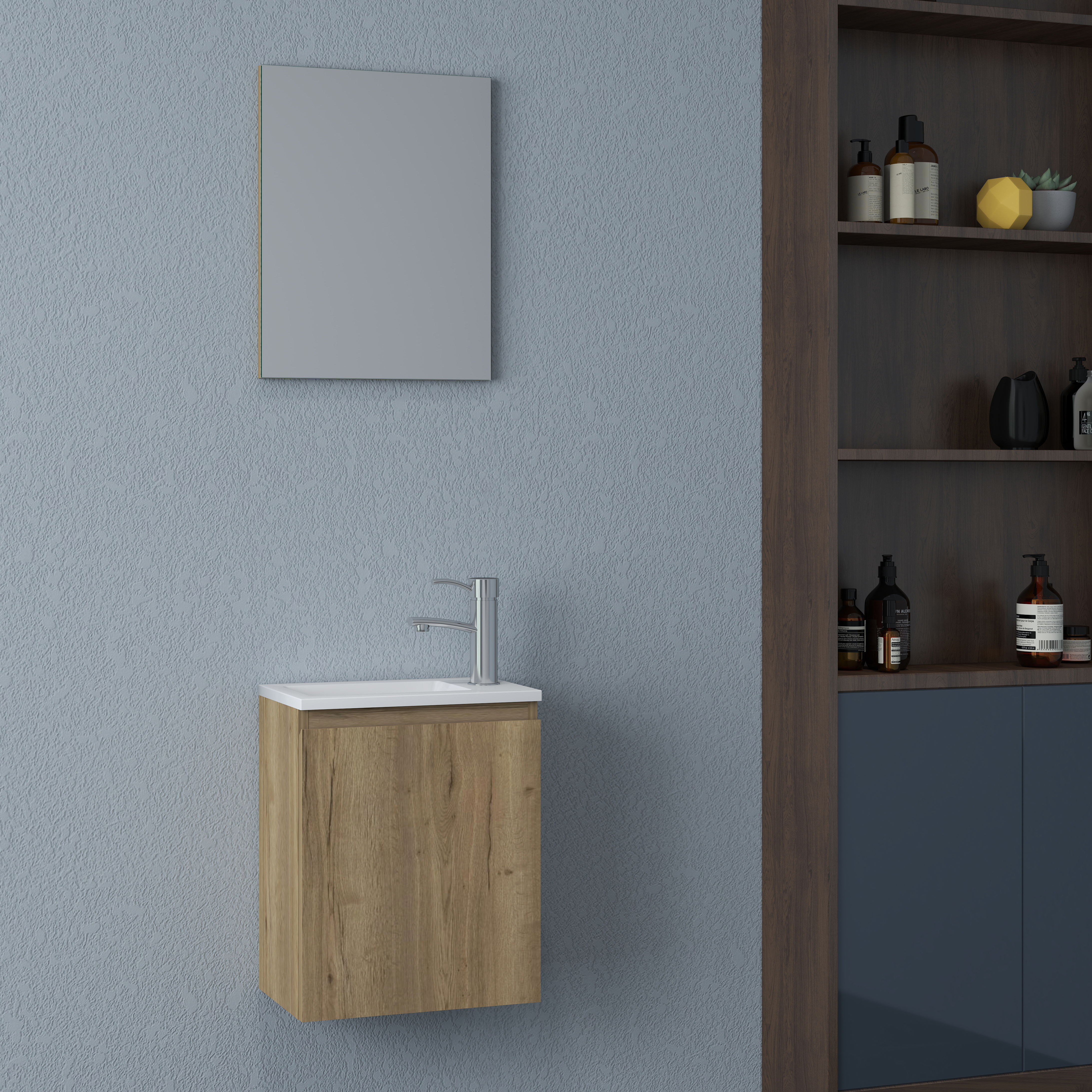 Pisa one-box badmøbel fra Nortiq er en funktionel og pladsbesparende løsning til mindre badeværelser. Sættet består af et underskab med én låge, en stilren håndvask og et spejl, hvor lågen er udstyret med et moderne designgreb, der giver et elegant og nutidigt look.