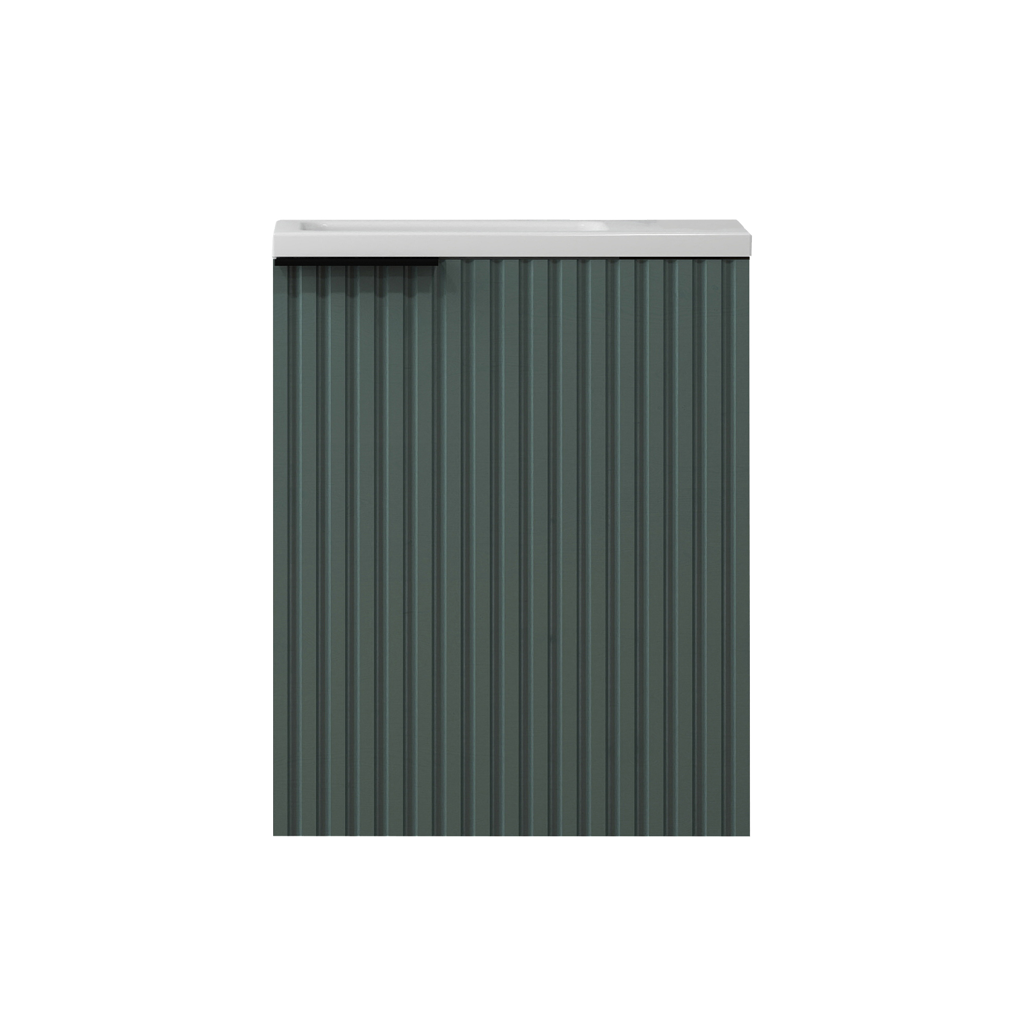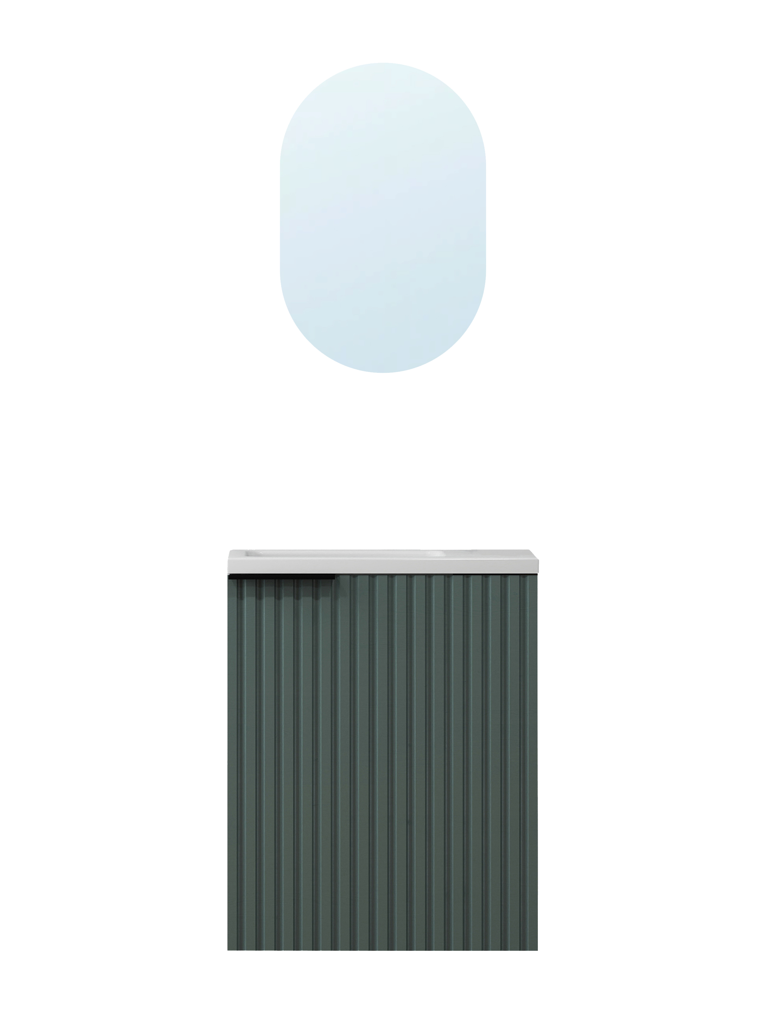 Den stilede riflede låge tilfører et eksklusivt og roligt udtryk, som passer perfekt ind i det moderne badeværelse, og som en komplet løsning leveres One-Box møblet inklusiv håndvask og spejl, så du får et harmonisk og gennemtænkt møbel, der er klar til montering og skaber et stilrent helhedsindtryk fra første øjekast.