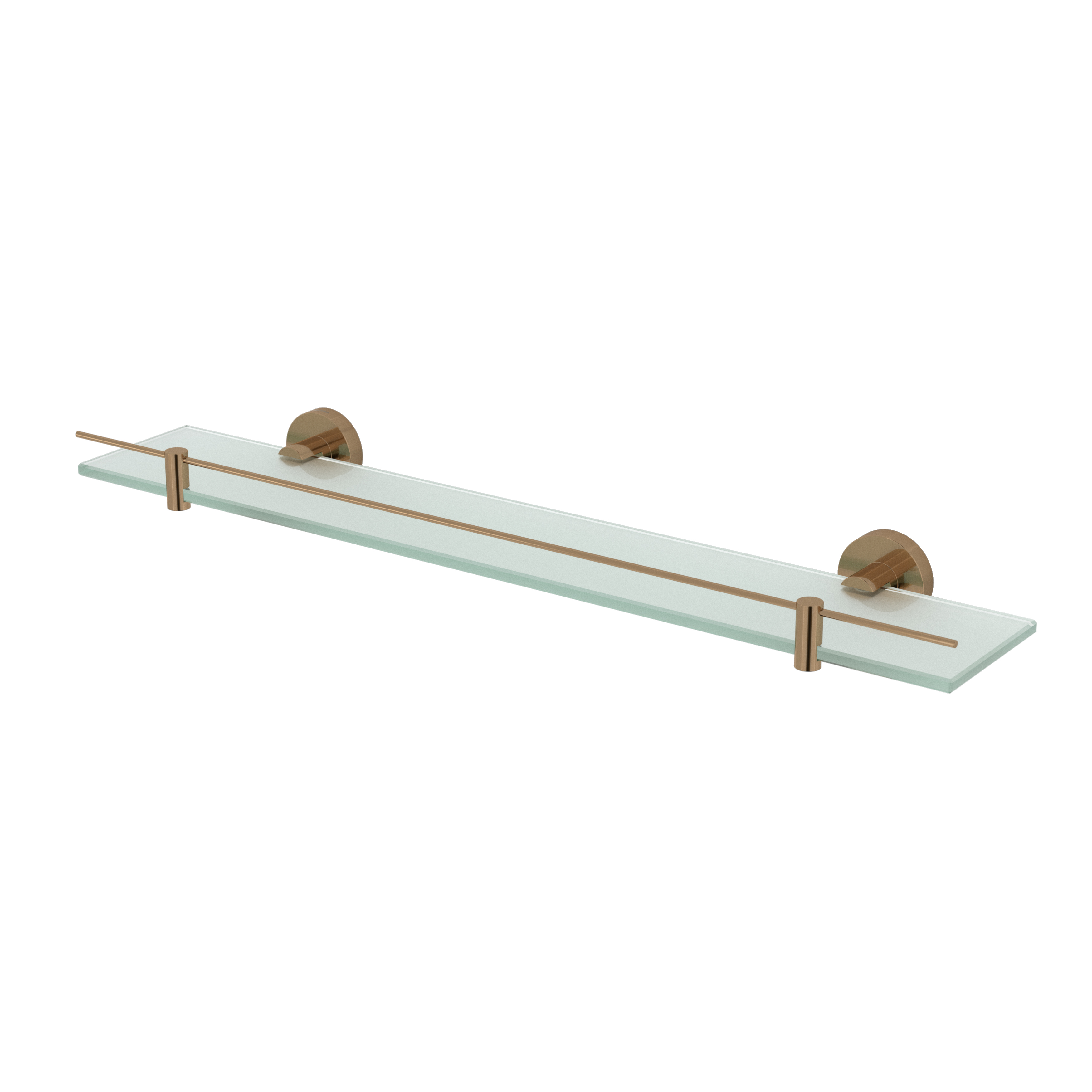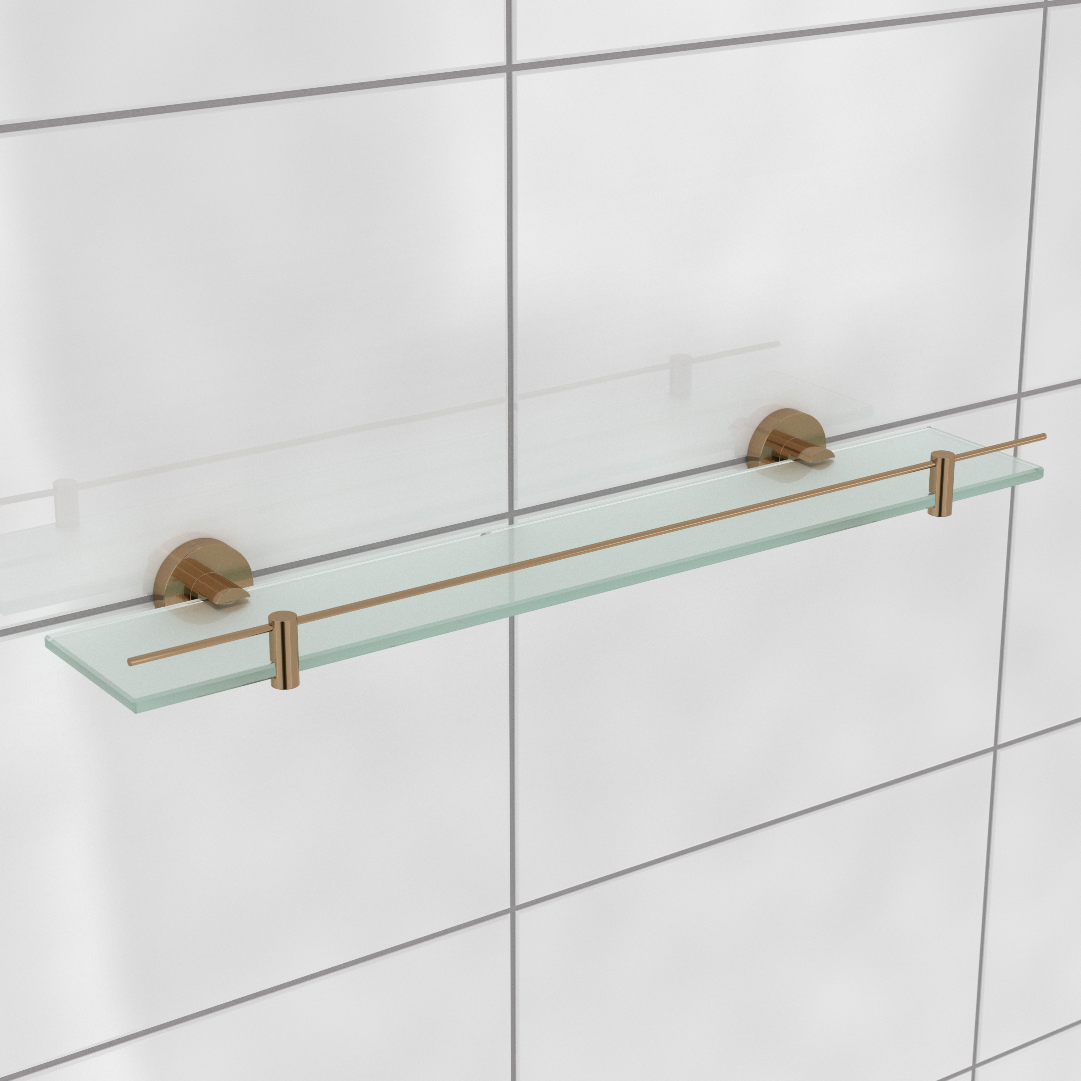 Kosmos glashylde i børstet krom tilbyder småopbevaring på badeværelset. Her kan mindre badeværelsesartikler placeres.
