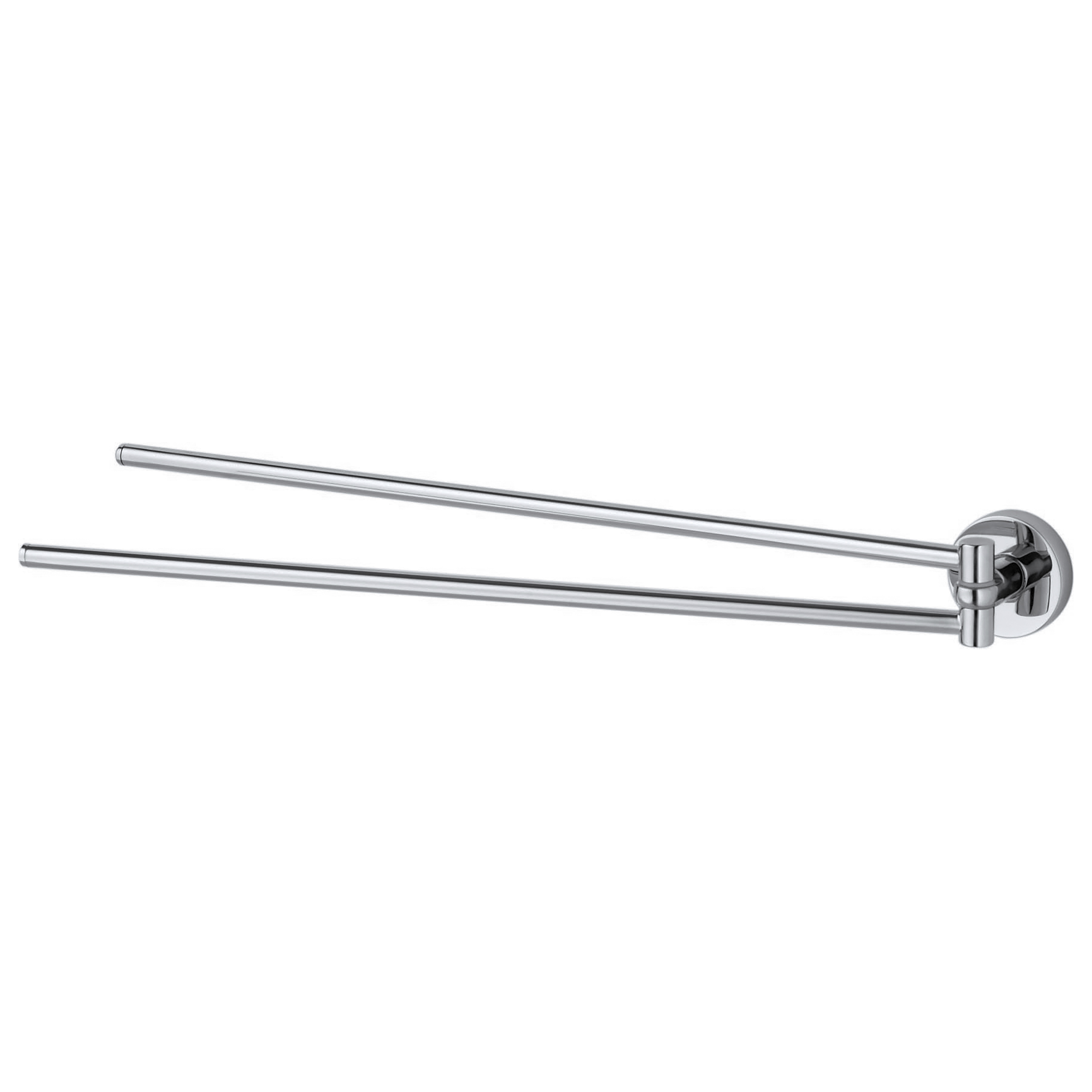 Denne dobbelte, svingbare håndklædestang fra Hacekas Kosmos-serie i krom giver en praktisk løsning til opbevaring af håndklæder på badeværelset.