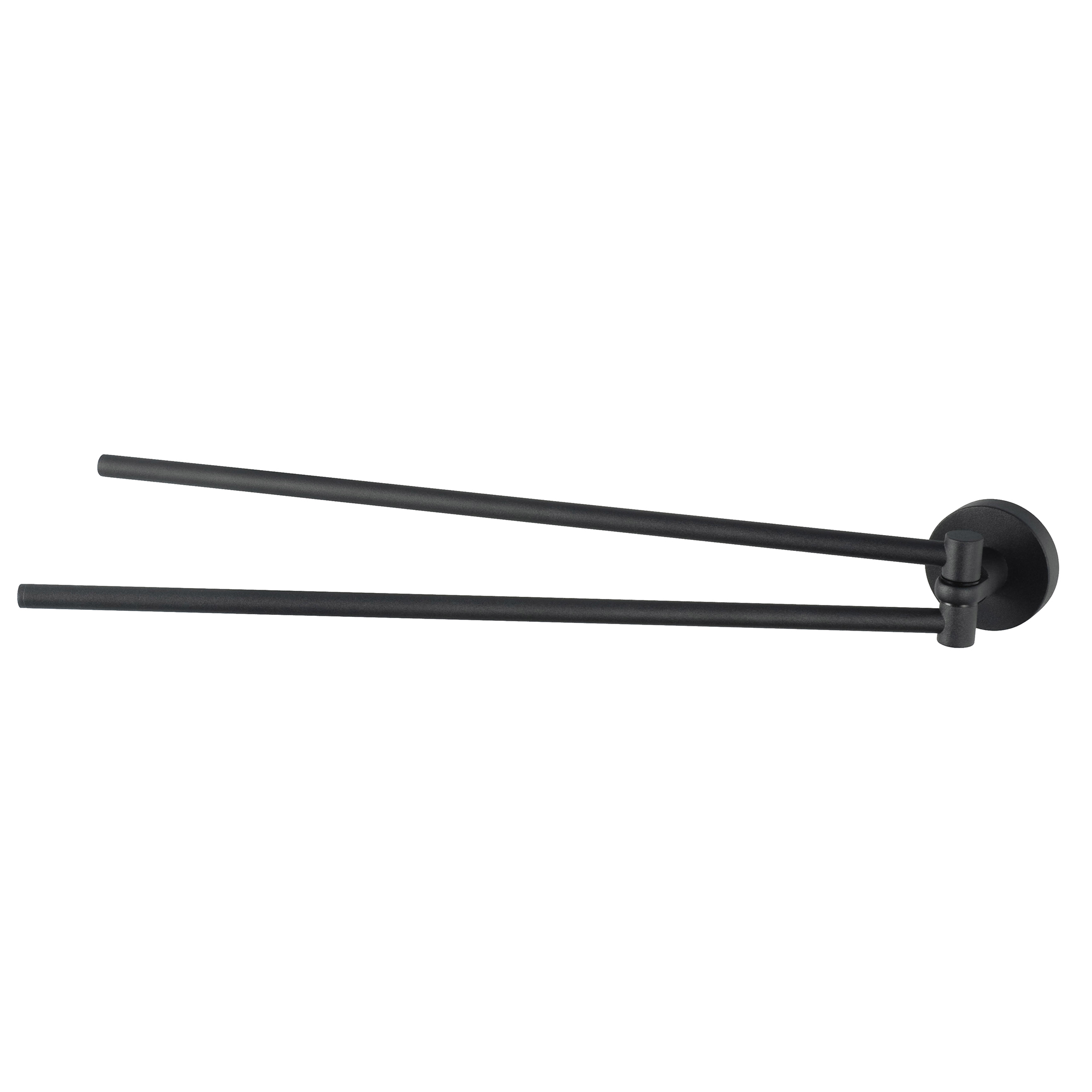 Denne dobbelte, svingbare håndklædestang fra Hacekas Kosmos-serie i mat sort giver en praktisk løsning til opbevaring af håndklæder på badeværelset.