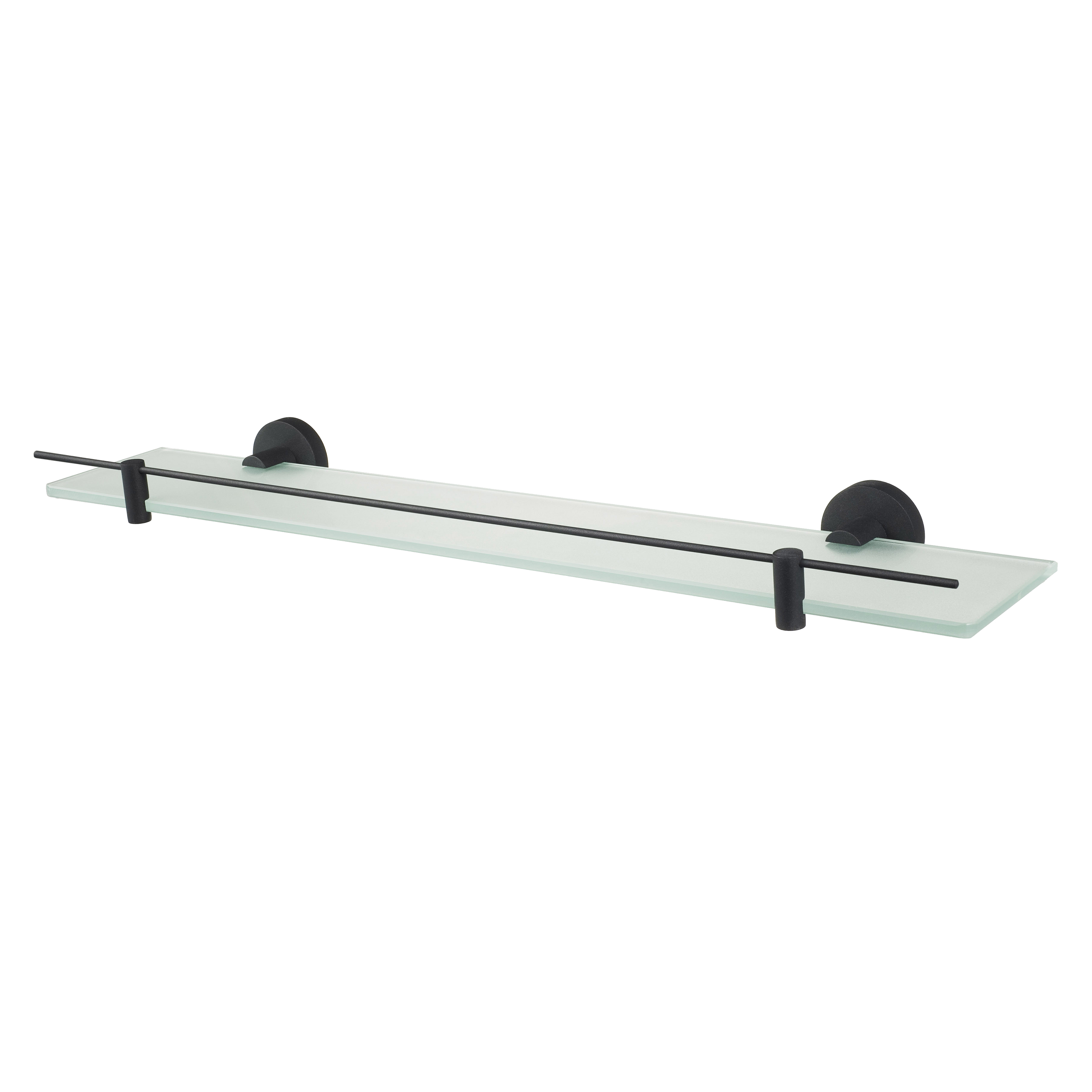 Denne elegante glashylde i mat sort er både funktionel og æstetisk, hvilket gør den til den perfekte løsning til opbevaring og fremvisning af dine badeværelsesartikler. Uanset om det er parfumer, skønhedsprodukter eller dekorative elementer, tilføjer denne hylde et raffineret præg til dit badeværelse.