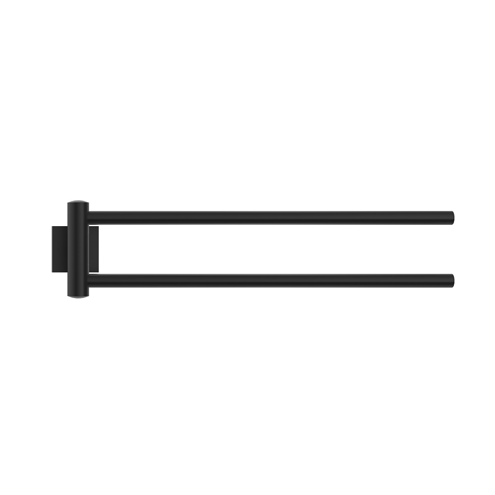 House Rio black svingbare håndklædestang er en praktisk tilføjelse til badeværelset. Stangen kan opbevare flere håndklæder, og den er fleksibel at bruge, da de to stænger kan bevæges. Holderen er af rustfrit stål med et mat sort finish. Den har et simpelt og stilrent design, der giver et moderne udtryk i hjemmet.