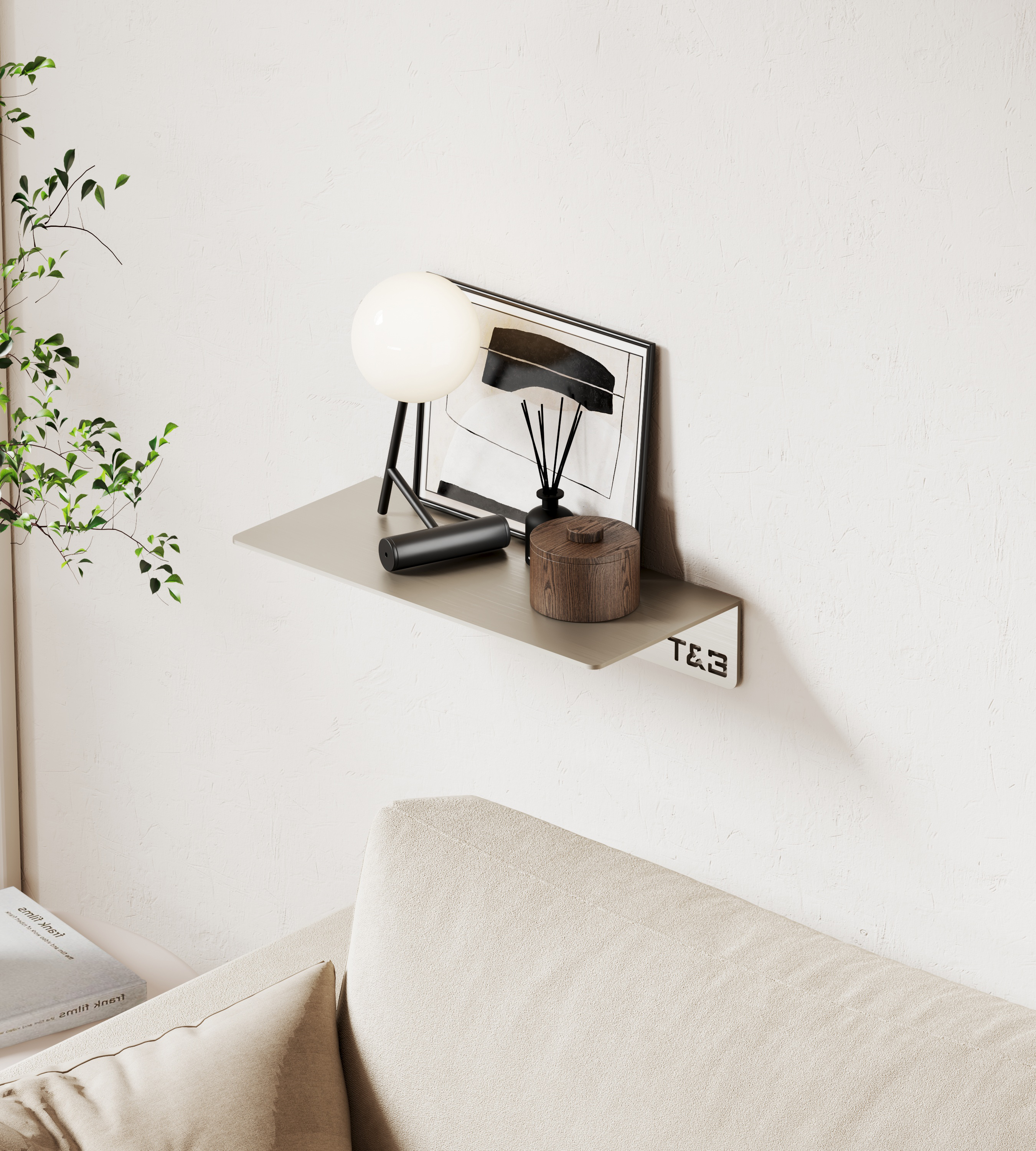 Med T&B hylden får du to monteringsmuligheder. Brug den medfølgende 3M tape for en stærk fastgørelse uden at bore, eller vælg traditionel skruefastgørelse for ekstra stabilitet – begge muligheder sikrer en nem og fleksibel installation.