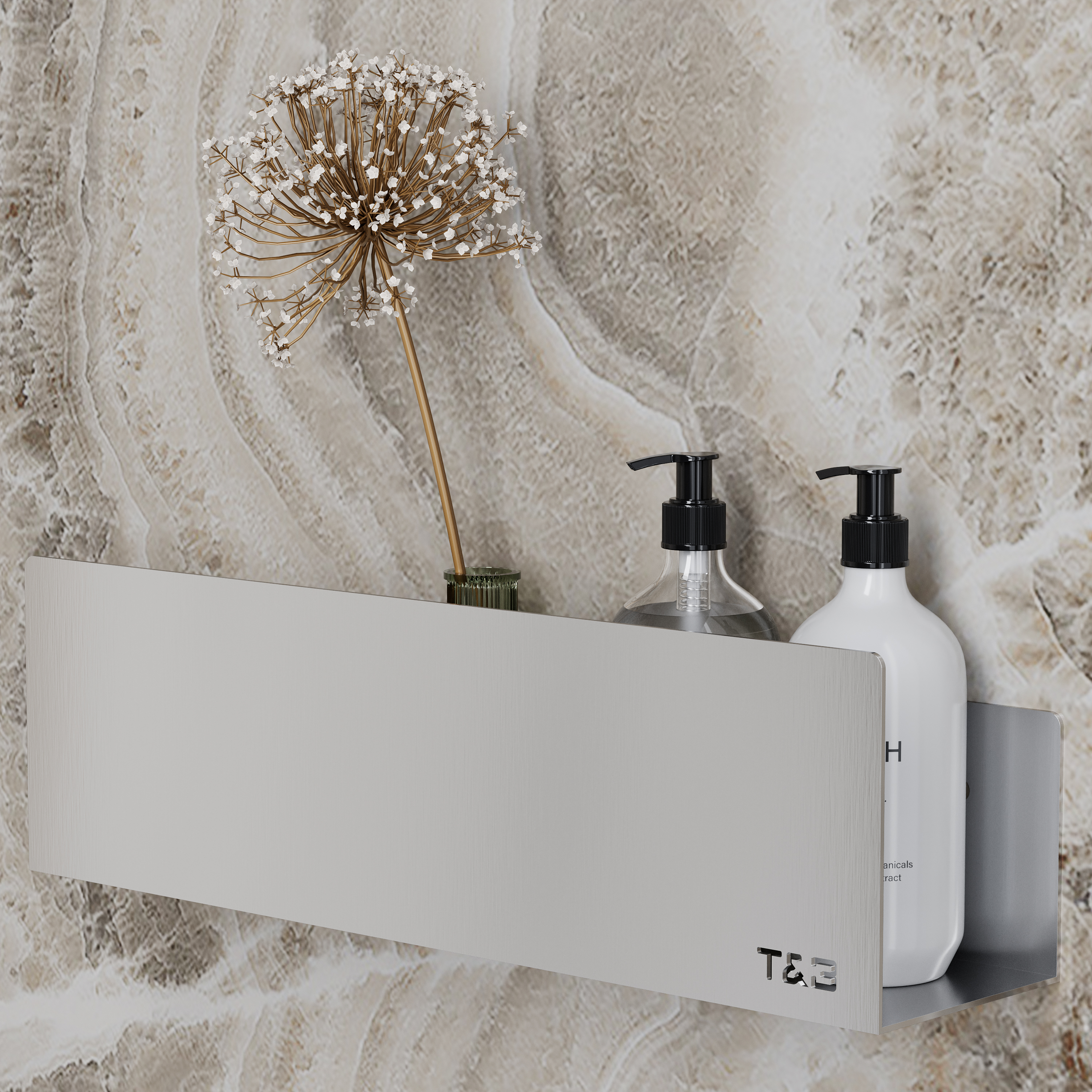 Opgrader din indretning med denne stilede T&B aluminium hylde – en perfekt kombination af stil og funktionalitet. Denne alsidige hylde er ideel til både badeværelset og organisering af dine badartikler.