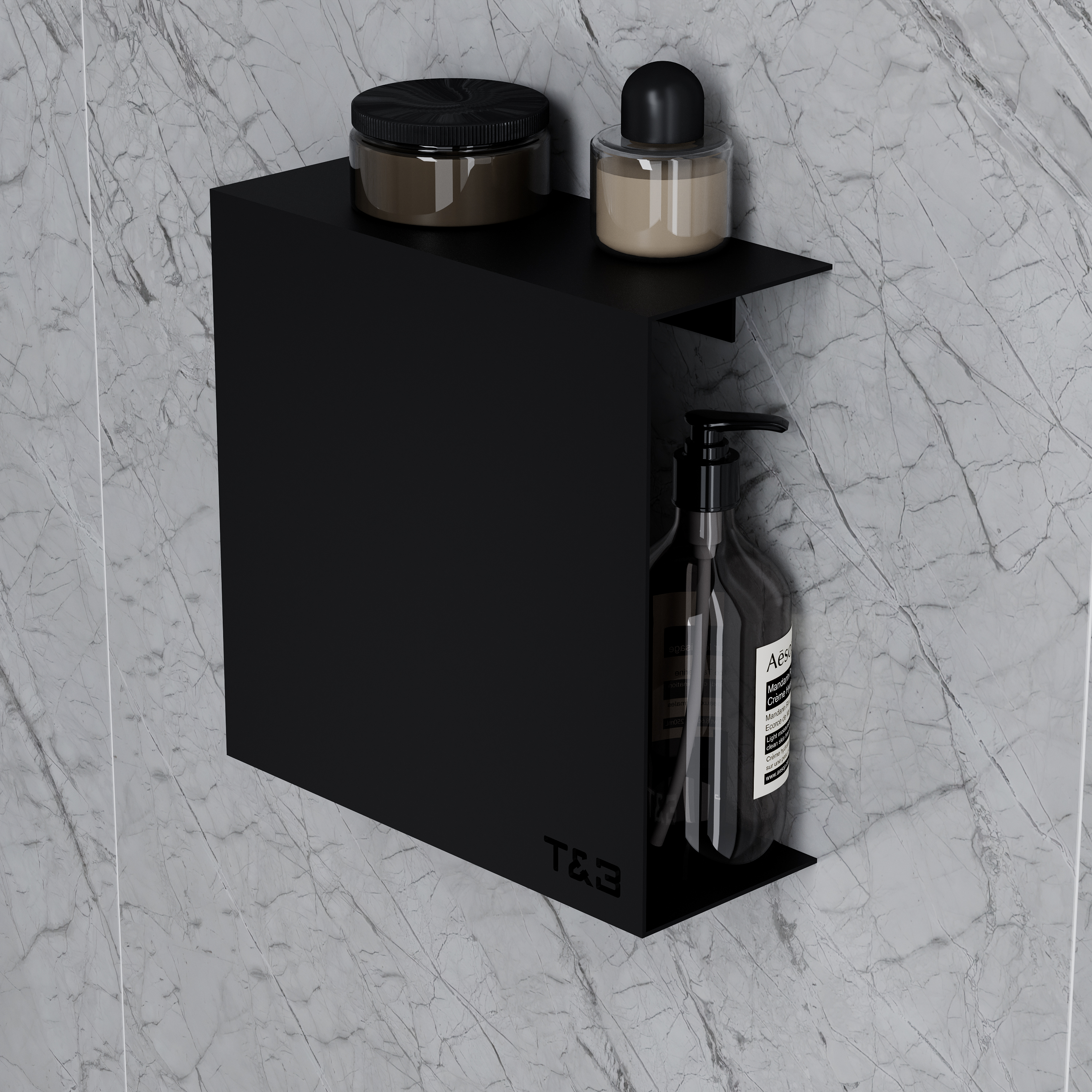 Med T&B hylden får du to monteringsmuligheder. Brug den medfølgende 3M tape for en stærk fastgørelse uden at bore, eller vælg traditionel skruefastgørelse for ekstra stabilitet – begge muligheder sikrer en nem og fleksibel installation.