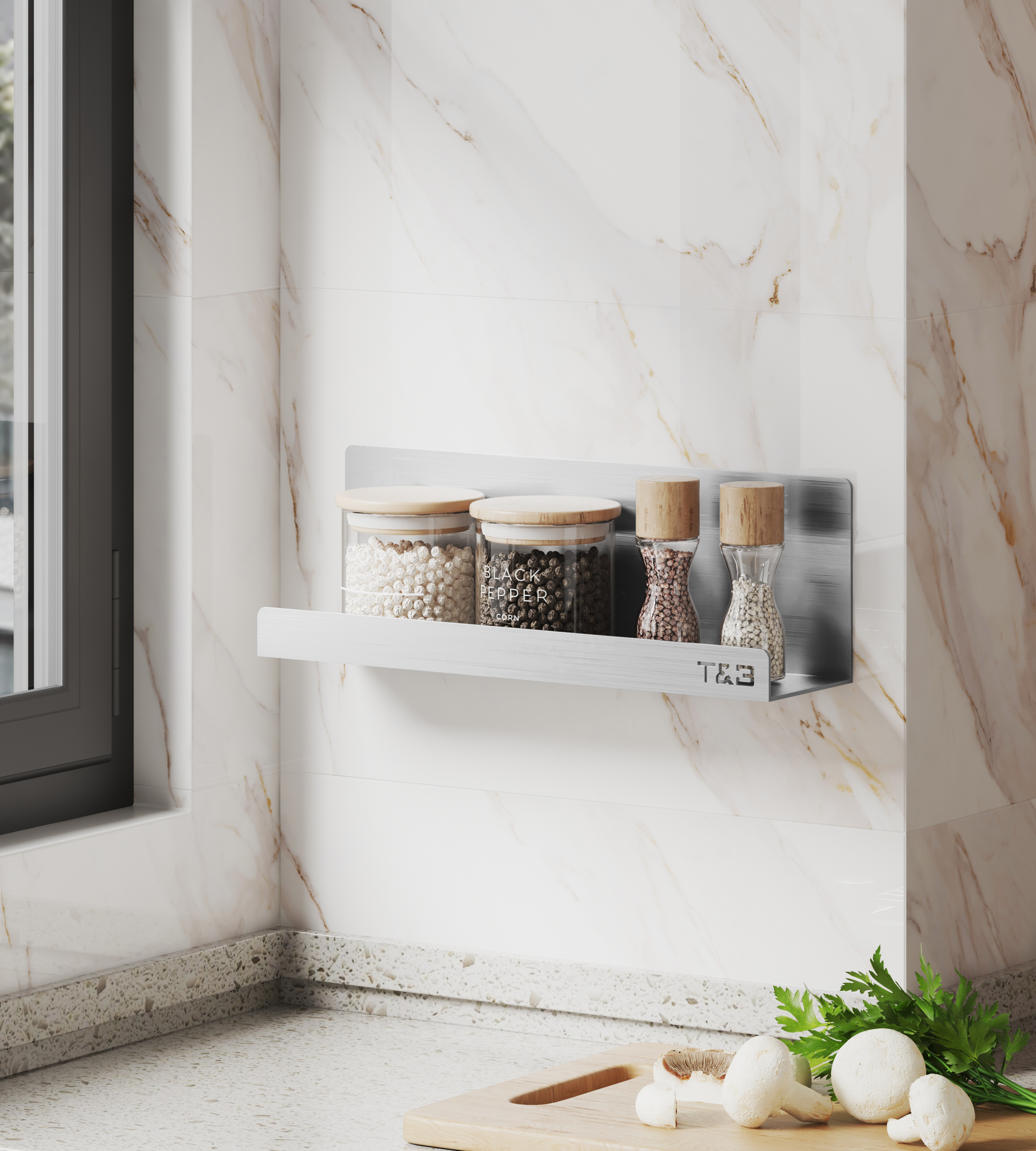 Med T&B hylden får du to monteringsmuligheder. Brug den medfølgende 3M tape for en stærk fastgørelse uden at bore, eller vælg traditionel skruefastgørelse for ekstra stabilitet – begge muligheder sikrer en nem og fleksibel installation.