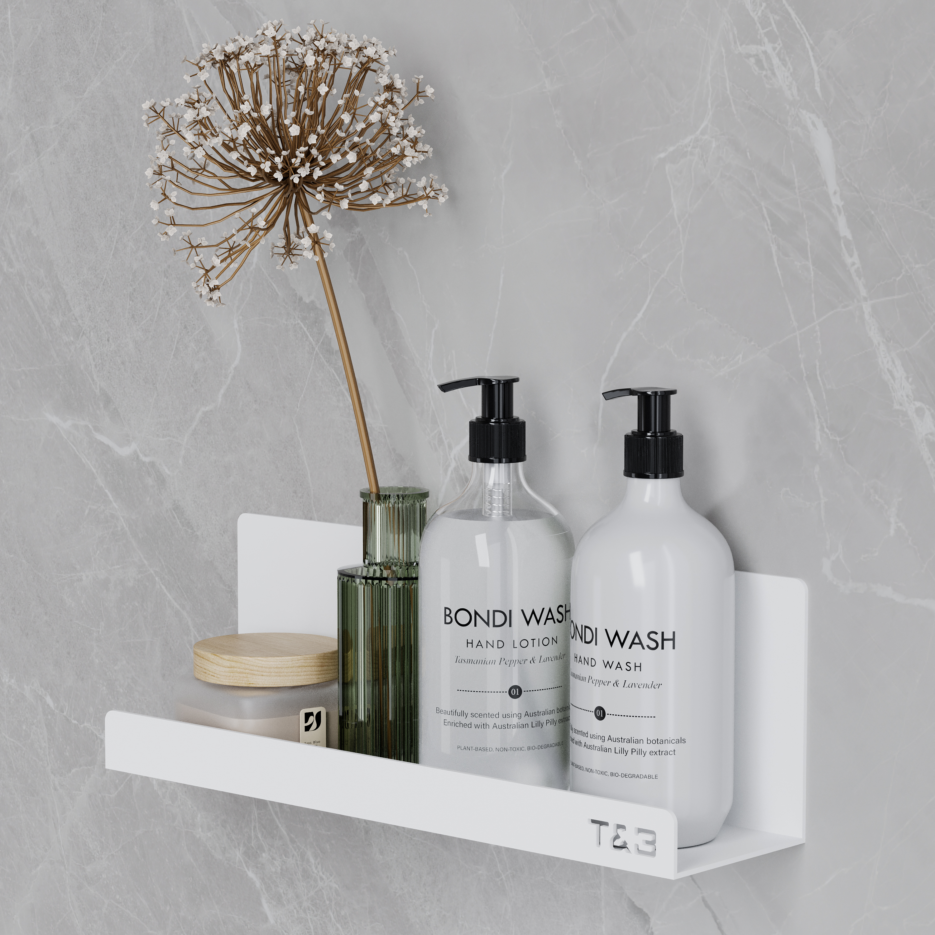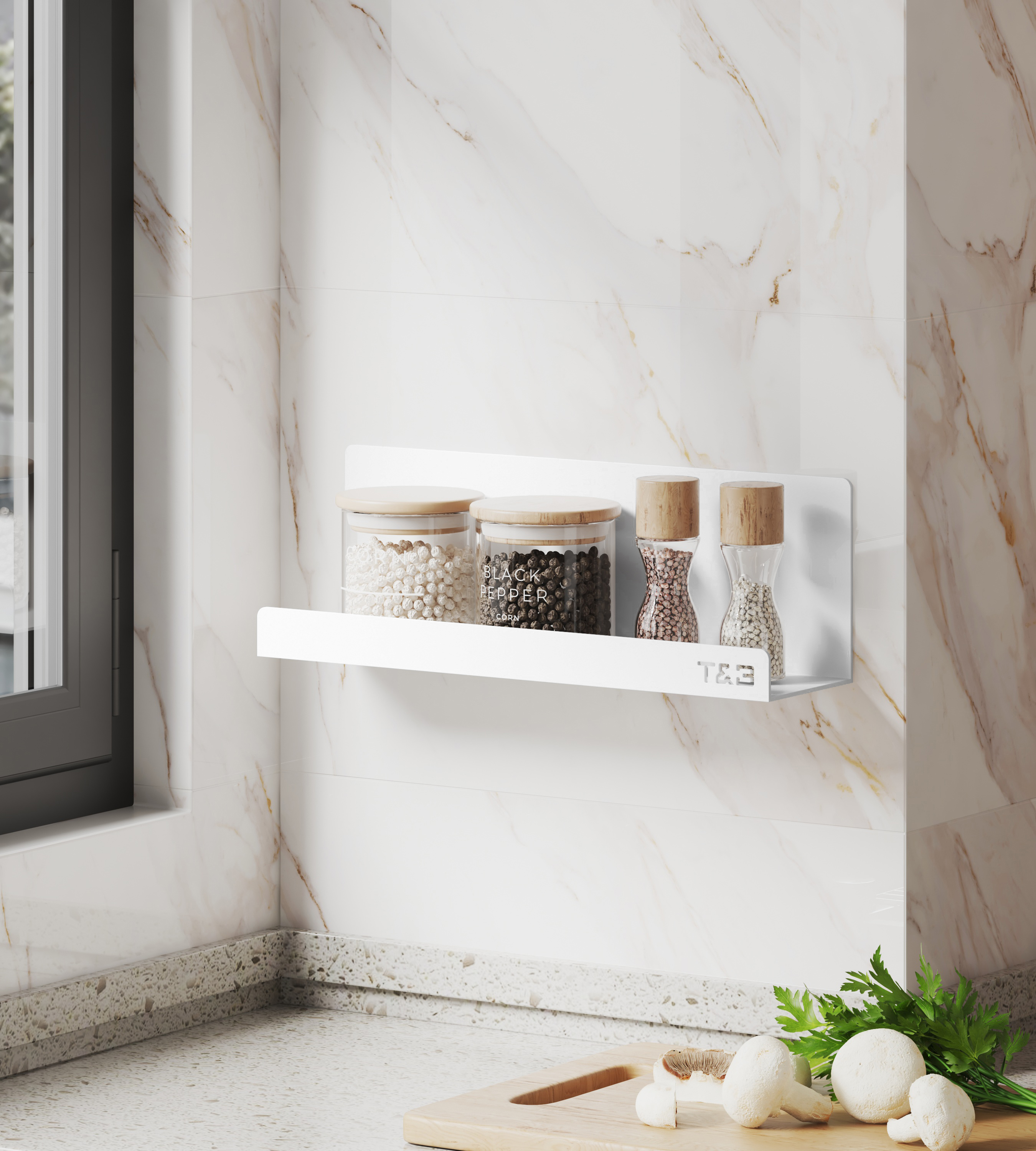 Med T&B hylden får du to monteringsmuligheder. Brug den medfølgende 3M tape for en stærk fastgørelse uden at bore, eller vælg traditionel skruefastgørelse for ekstra stabilitet – begge muligheder sikrer en nem og fleksibel installation.