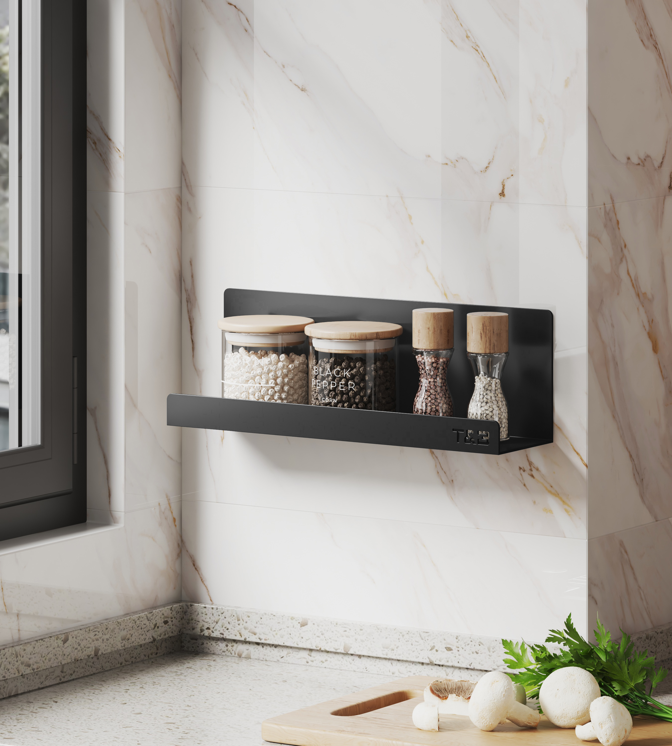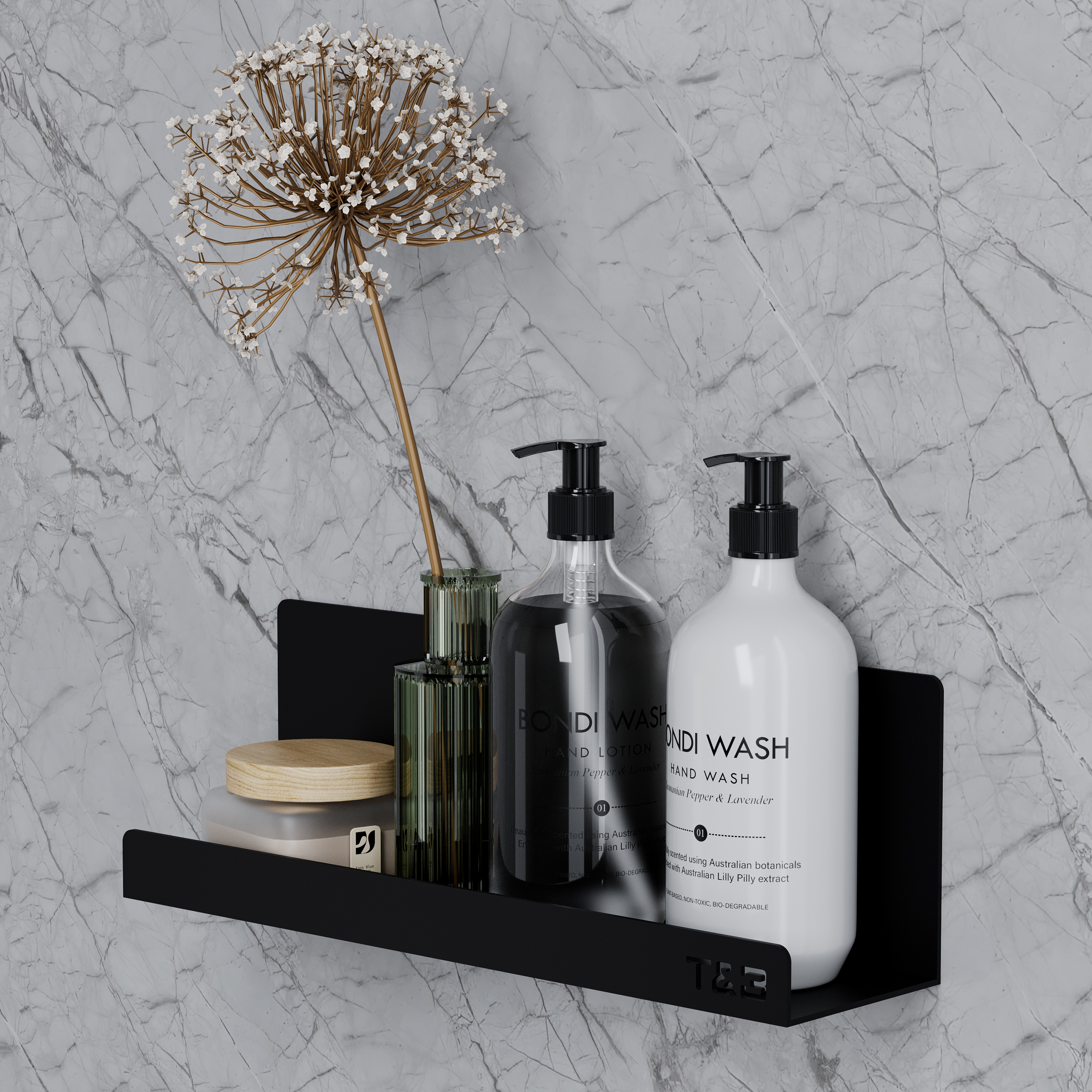 Med T&B hylden får du to monteringsmuligheder. Brug den medfølgende 3M tape for en stærk fastgørelse uden at bore, eller vælg traditionel skruefastgørelse for ekstra stabilitet – begge muligheder sikrer en nem og fleksibel installation.