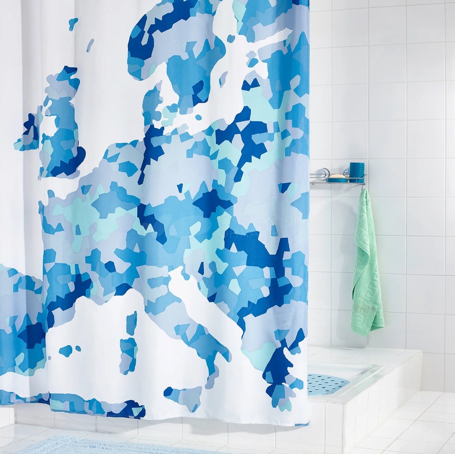 Ridder bruseforhænget i et europa landkort designprint, er i 100% polyester, der beskytter mod vandstænk og tilføjer et moderne touch til dit rum, samtidig med at det er nemt at rengøre og hurtigt tørrer.