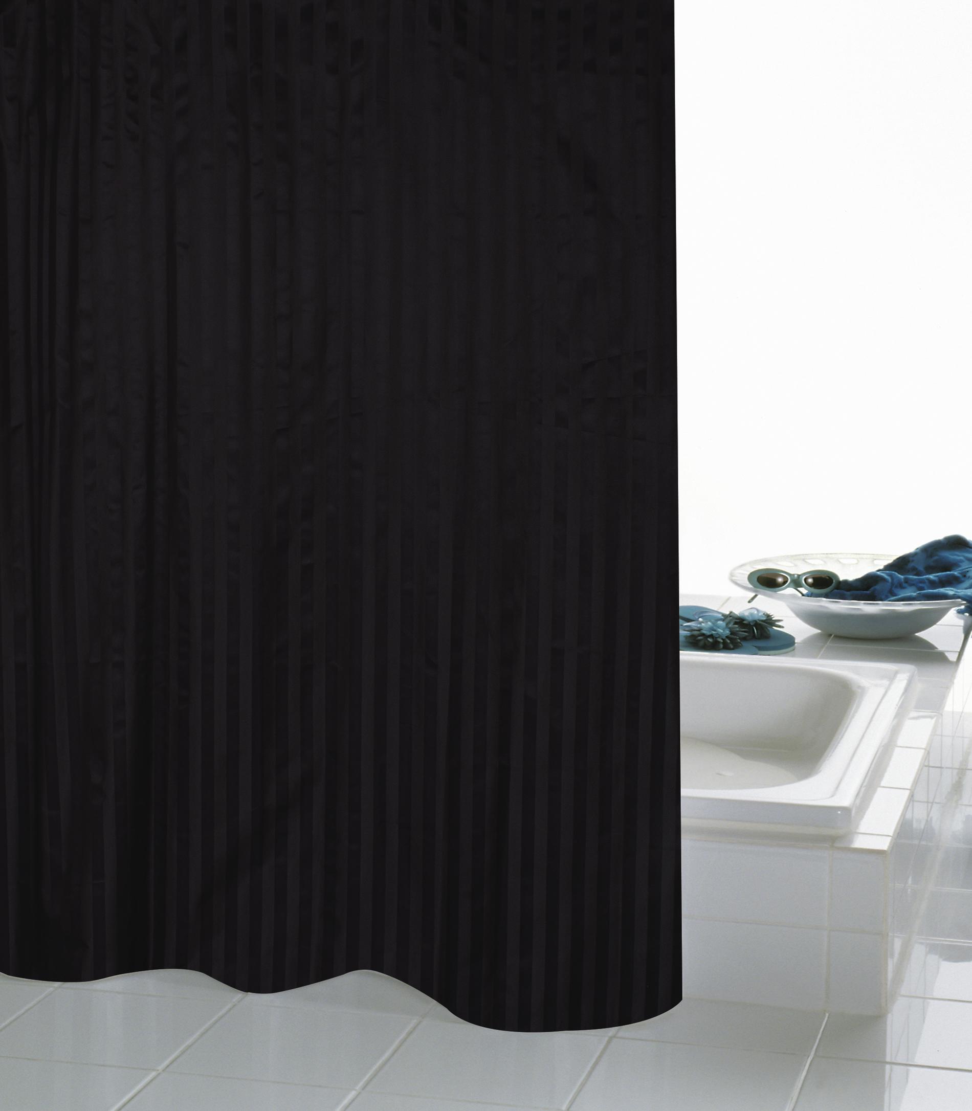 Dette sorte badeforhæng er produceret i tekstil med en flot glanseffekt, og det fremstår enkelt og elegant på badeværelset. Badeforhænget er lavet af 100% polyester, der er vandafvisende og derfor praktisk at bruge i brusebadet eller karbadet. Der er syet et bånd ind nederst på badeforhænget, således at det falder pænt og er behageligt at bruge i badet. Forhænget er nemt at montere, da det er udstyret med huller til ophæng på bøjlestang. Her kan der med fordel tilkøbes badeforhængsringe. Derudover kan badeforhænget vaskes i vaskemaskinen ved op til 60 grader, og det kan herefter stryges ved lave temperaturer.