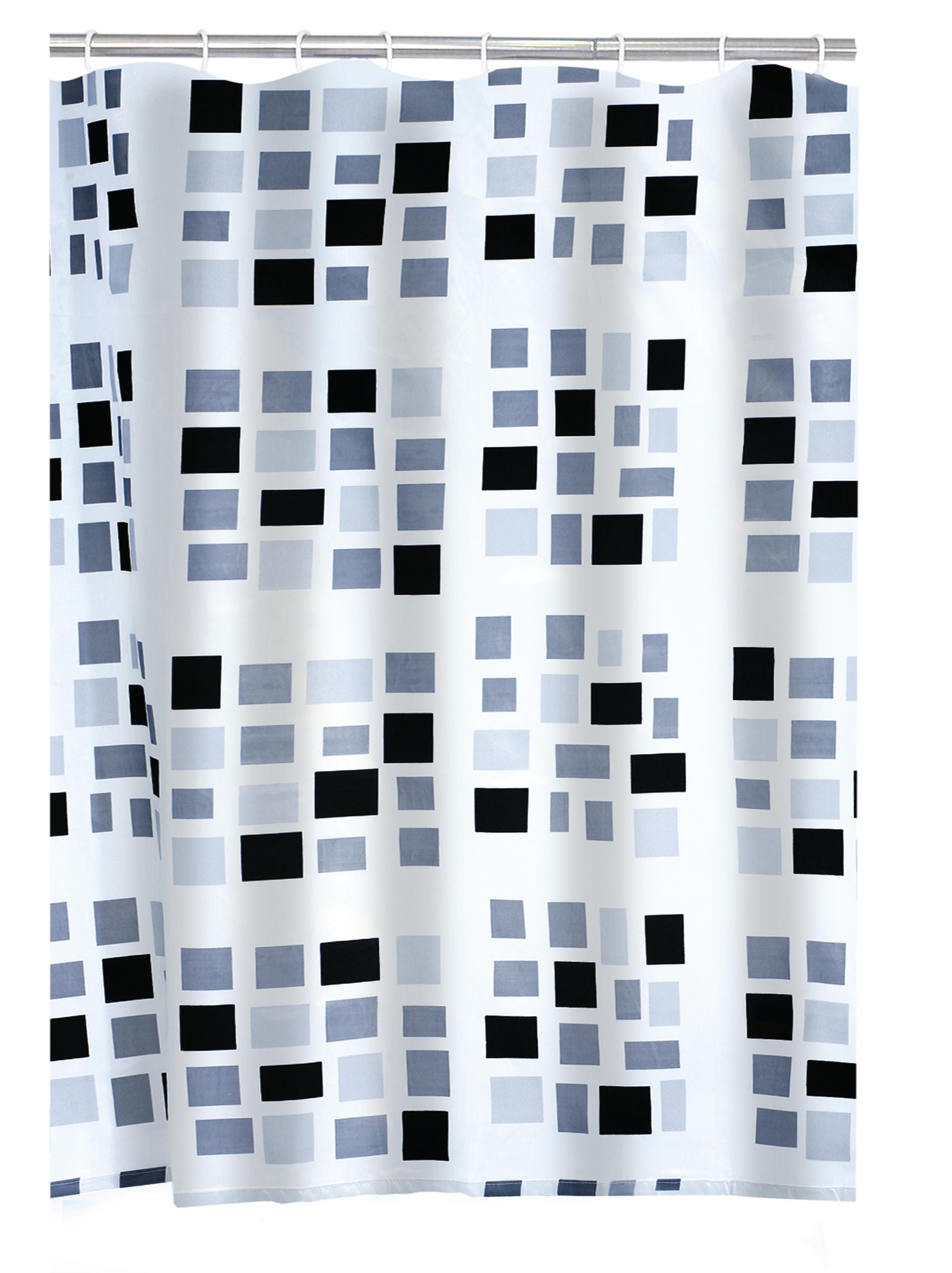 Dette hvide, grå og sorte badeforhæng er produceret i tekstil med et mosaik-mønster, og det fremstår dekorativt og elegant på badeværelset. Badeforhænget er lavet af 100% polyester, der er vandafvisende og derfor praktisk at bruge i brusebadet eller karbadet. Der er syet et bånd ind nederst på badeforhænget, således at det falder pænt og er behageligt at bruge i badet. Forhænget er nemt at montere, da det er udstyret med huller til ophæng på bøjlestang. Her kan der med fordel tilkøbes badeforhængsringe. Derudover kan badeforhænget vaskes i vaskemaskinen ved op til 60 grader, og det kan herefter stryges ved lave temperaturer.