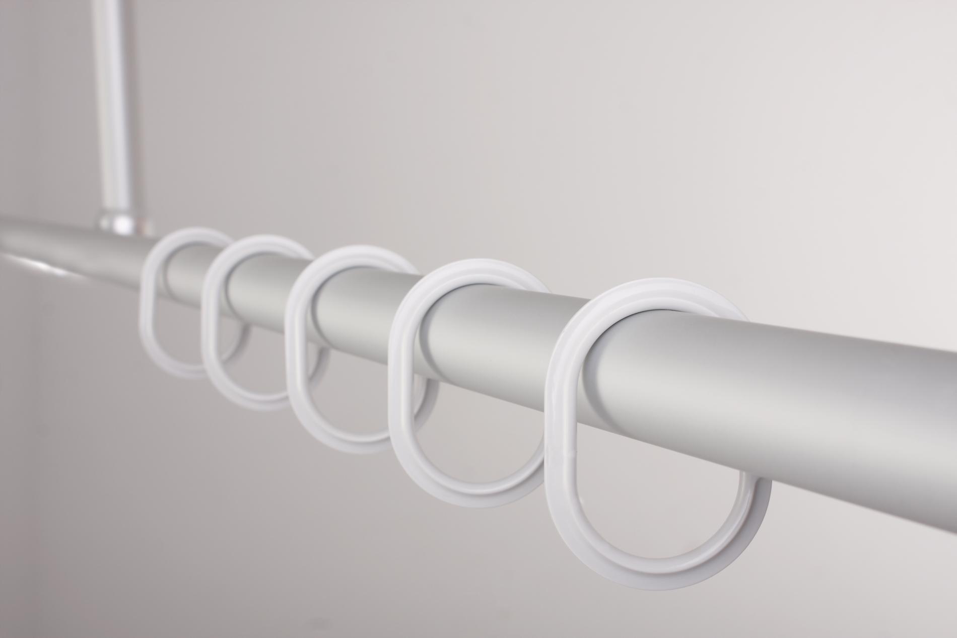 Disse ringe er lavet af holdbart plastmateriale, der både er bøjeligt og formstabilt. Den smarte åbning i siden gør det nemt at montere dem direkte på stangen uden at skulle tage noget fra hinanden. Når de kombineres med en RIDDER-loftsstang, kan ringene let bevæge sig frem og tilbage langs stangen uden at sætte sig fast.