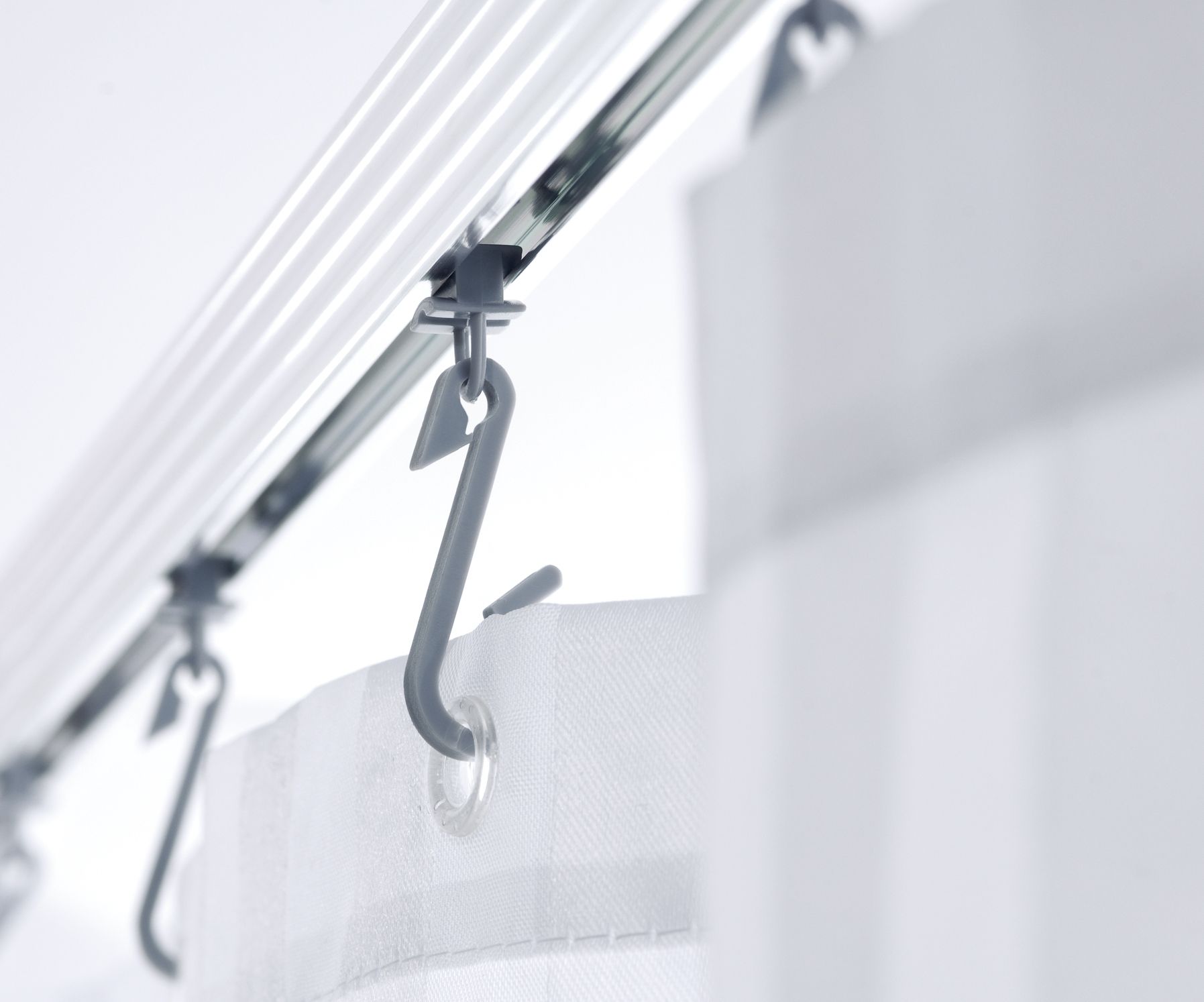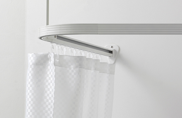 Der kræves ikke bruseforhængsringe, da der medfølger kroge. Bruseskinnen er lavet af aluminium, hvilket gør den næsten rustfri. Takket være den medfølgende loftstøtte hænger stangen stabilt og lige.