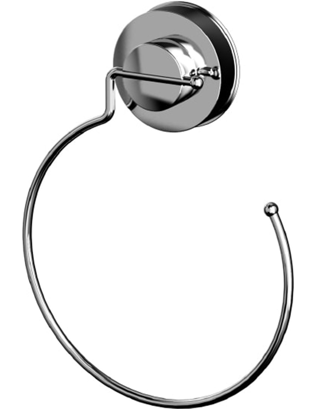 Denne håndklædeholder fra RIDDER har et moderne og funktionelt design, der passer perfekt ind i enhver badeværelsesindretning. Den halvmåneformede ring er udstyret med en vakuum sugekop, hvilket gør det nemt at montere den på væggen uden brug af skruer eller lim.