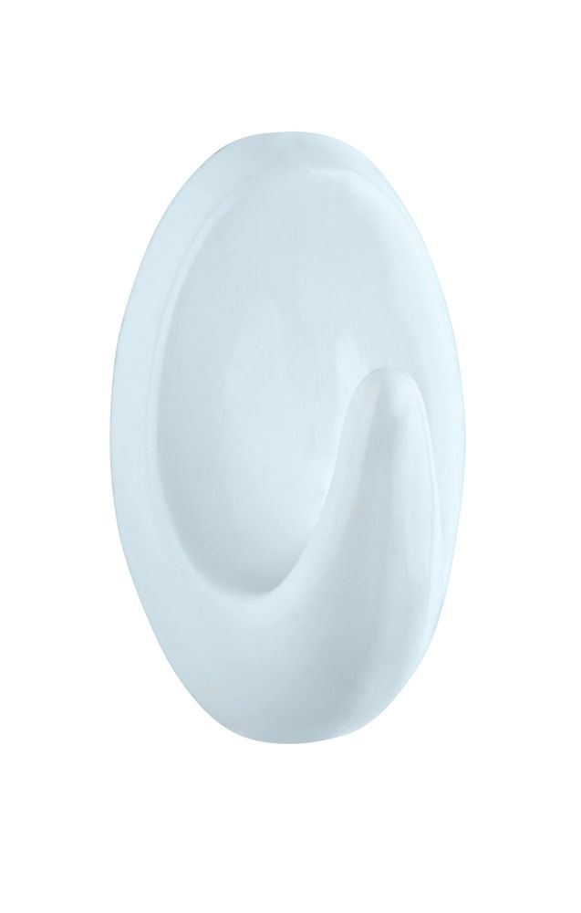 Sæt med 6 vægkroge til optimal anvendelse i badeværelset eller husholdningen. Høj kvalitet i et ovalt design. Lavet af hvid plastik. For montering, fjern blot beskyttelsesfilmen og sæt dem fast. Hver krog måler 1,5 cm i bredden, 2,5 cm i højden og 1,5 cm i dybden.