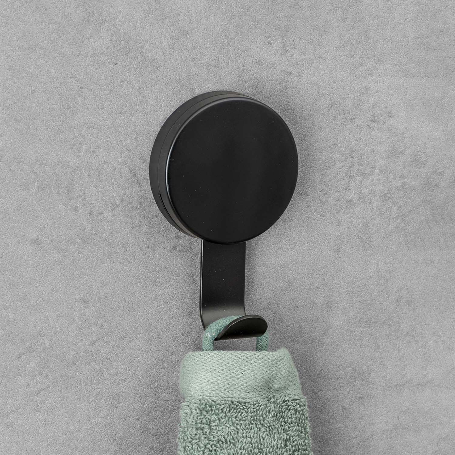 De sorte kroge i matlakeret stål er slidstærke og sikrer langvarig brug uden at miste funktion. Håndklæder, viskestykker og tøj får nu sin plads overalt i hjemmet – om det er i badeværelse, gæstetoilet, soveværelse, køkken eller entré. De smarte kroge har et kompakt design, der gør det nemt at integrere dem overalt uden at fylde for meget. Hver enkelt krog kan bære op til 10 kg direkte efter montering, så du kan stole på, at dine badeværelsesaccessories altid sidder sikkert.