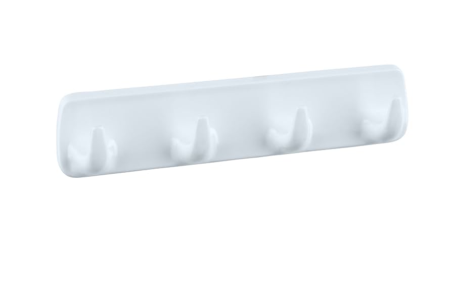 Denne hvide krogliste med 4 kroge er en enkel og effektiv måde at holde styr på tingene i hjemmet. Den er fremstillet i robust plast og egner sig perfekt til familier eller husstande med flere personer. Hver krog giver plads til f.eks. håndklæder, vaskeklude eller badelagner. Listen monteres nemt ved hjælp af den selvklæbende bagside – ingen skruer, ingen værktøj. Og skulle du få brug for at fjerne den, kan det gøres uden at efterlade spor på væggen.