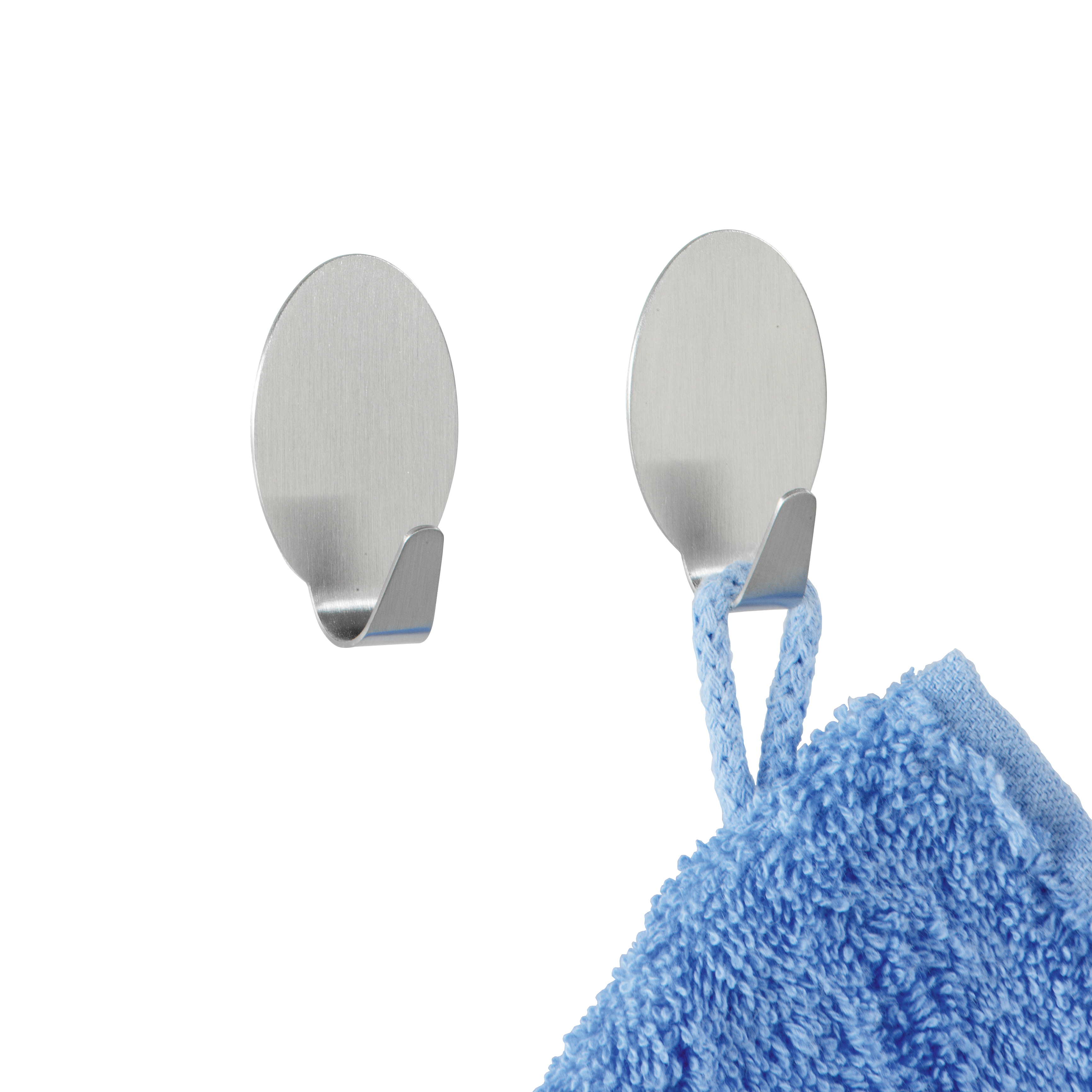 Krogesættet har et minimalistiske design med sin ovale form og flade konstruktion. Krogesættet består af to kroge af mat rustfrit stål, der monteres nemt og hurtigt grundet krogenes strip-it-system. Krogene er udstyret med en selvklæbende bagside, der sikrer en nem installering uden boring.