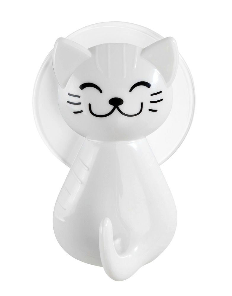 Denne muntre vægkrog i hvid har en høj bæreevne takket være en stor sugekop og er ideel til børneværelser, badeværelser, køkkener og resten af hjemmet. Krogen er udformet som en sød kat og er perfekt til håndklæder, viskestykker, tøj m.m. Den monteres let ved at fugte bagsiden og fastgøre uden behov for boring. Dens mål er 6 cm i bredden, 9,5 cm i højden og 5,5 cm i dybden.