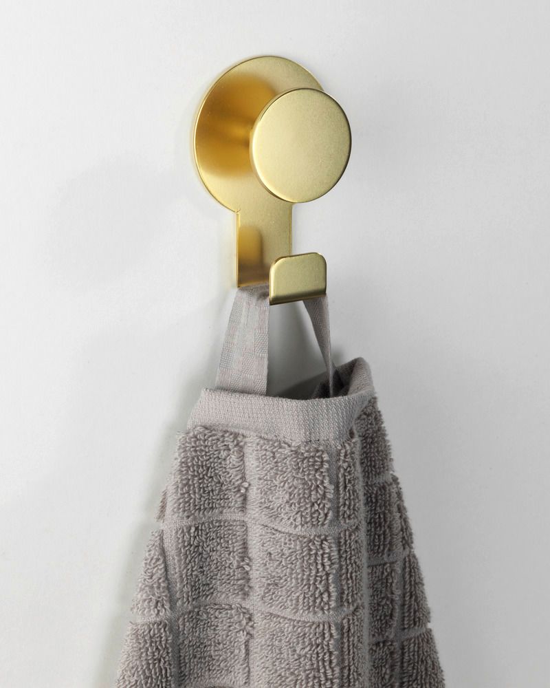 Denne elegante krog med 2 ophængningsmuligheder er perfekt til brug i badeværelset, køkkenet eller i hjemmet. Håndklædekrogen er lavet af robust rustfrit stål med en mat guldfinish, der giver et stilfuldt udseende. Den praktiske klæbende krog kan bruges som håndklædeholder, tøjkrog, badeværelseskrog eller køkkenkrog. Krogen monteres uden boring – du skal blot fjerne beskyttelsesfilmen og trykke den på plads. Målene er 5 cm i bredden, 7,5 cm i dybden og 2,5 cm i højden.