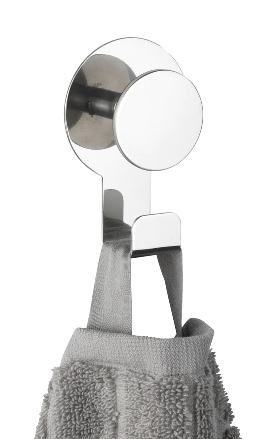 Den elegante krog Blandas fra WENKO giver med sine to ophængs muligheder ekstra plads til håndklæder, vaskeklude, tøj eller viskestykker – ideel til brug i både badeværelse, køkken og øvrige rum i hjemmet. Krogen er fremstillet i rustfrit stål af høj kvalitet og har en blank overflade, der passer ind i enhver indretning. Den monteres nemt uden brug af værktøj: fjern blot beskyttelsesfilmen og tryk krogen fast på den ønskede overflade. Ingen boring nødvendig.