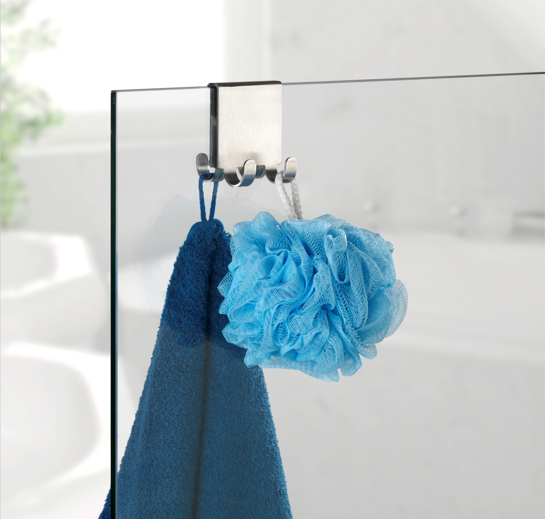 Denne høj-kvalitets dobbelte krog er designet til ophængning på glasbrusevægge og tilbyder rigelig plads både indvendigt og udvendigt til bruseartikler, svampe, håndklæder, badekåber og mere. Den har en ekstra belægning på bagsiden for at beskytte mod ridser og tilbyder 4 ophængningsmuligheder. Krogen er fremstillet af rustfrit, mat rustfrit stål og er velegnet til vægtykkelser op til 8 mm. Dens mål er 5,5 cm i bredden, 6 cm i højden og 7 cm i dybden.