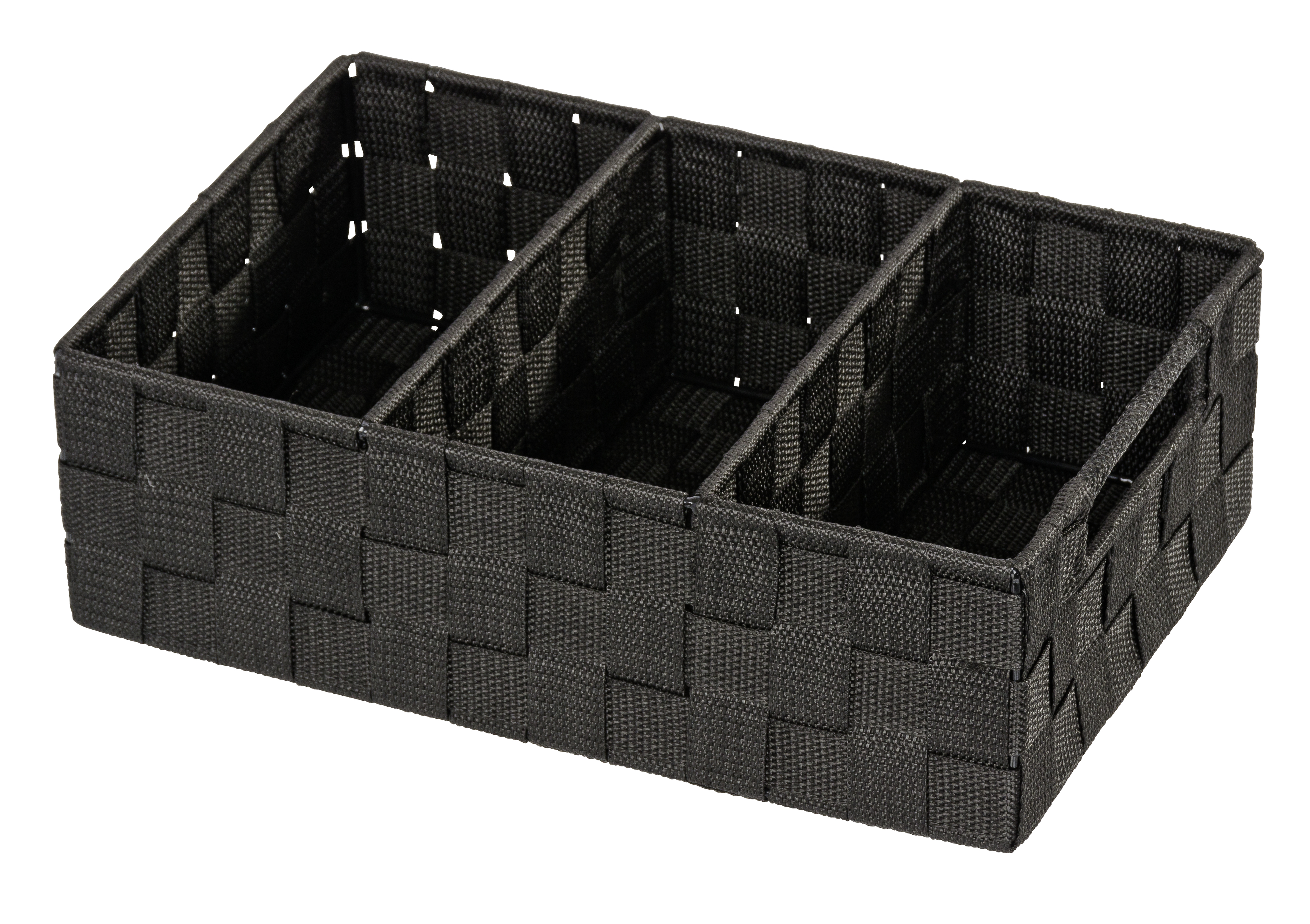 Wenko Adria organisatoren har tre rum, der er ideelle til hårbørster, hårspænder og andre småting. Den kommer i en stilet sort farve og kan kombineres med andet tilbehør. Fremstillet af høj kvalitet plastik, sikrer denne organiser med håndtag den nødvendige opbevaringsplads. Uanset om det er hårbørster, spænder eller andre småting, finder alt sin plads i den stilfulde organizer.