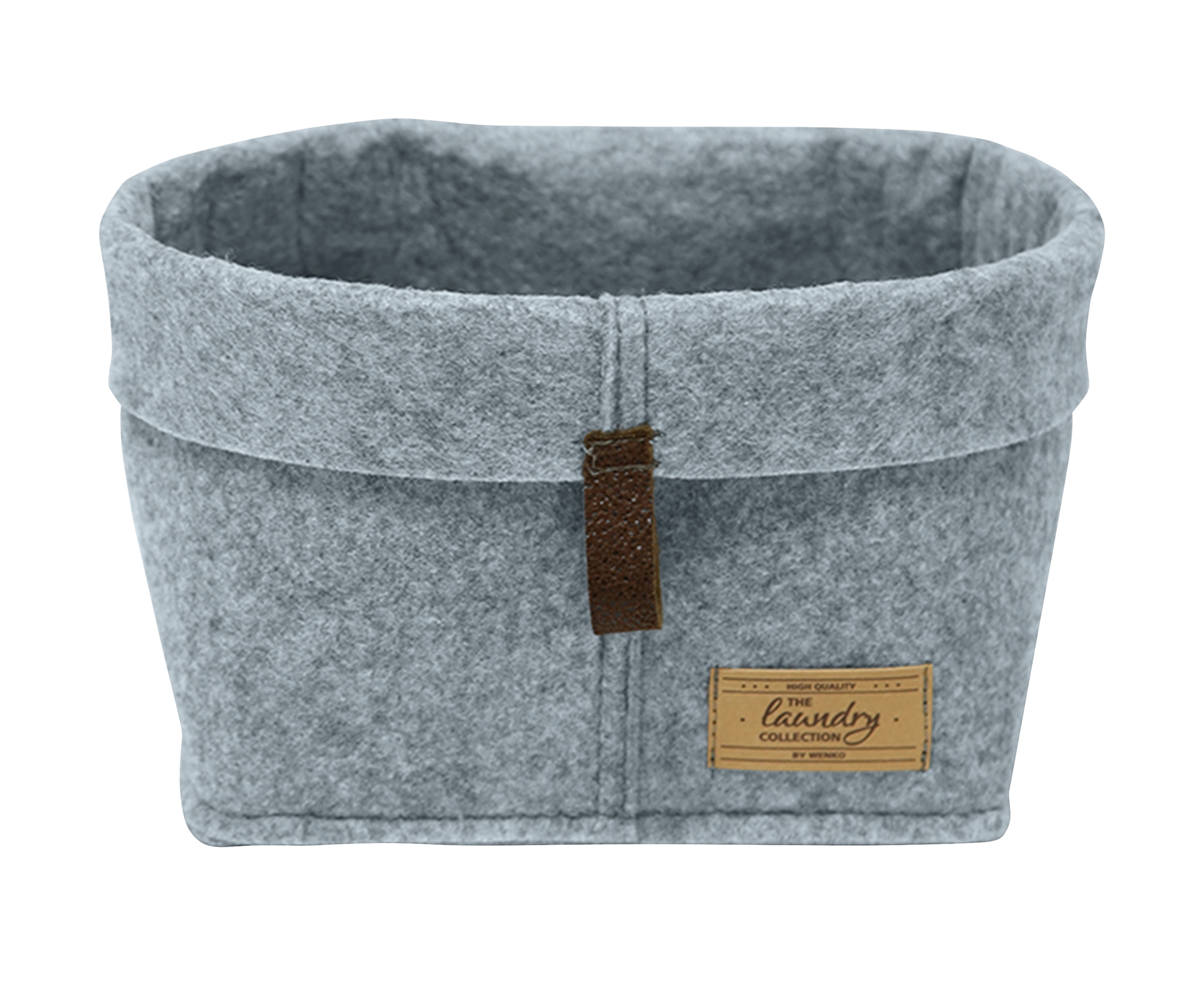 Moderne filt kurv til en særligt attraktiv organisering i hele husstanden. Den kan anvendes fleksibelt i lukkede skuffer eller på åbne hylder. Kurven har en skandinavisk indretningsstil med særligt robuste materialer, 100 % polyester. Yderligere kurvestørrelser fra Feli-serien fra WENKO er tilgængelige. Målene er 24 cm i bredden, 16 cm i højden og 16 cm i dybden, og med en hævet kant er højden 21 cm. Den kommer i grå.