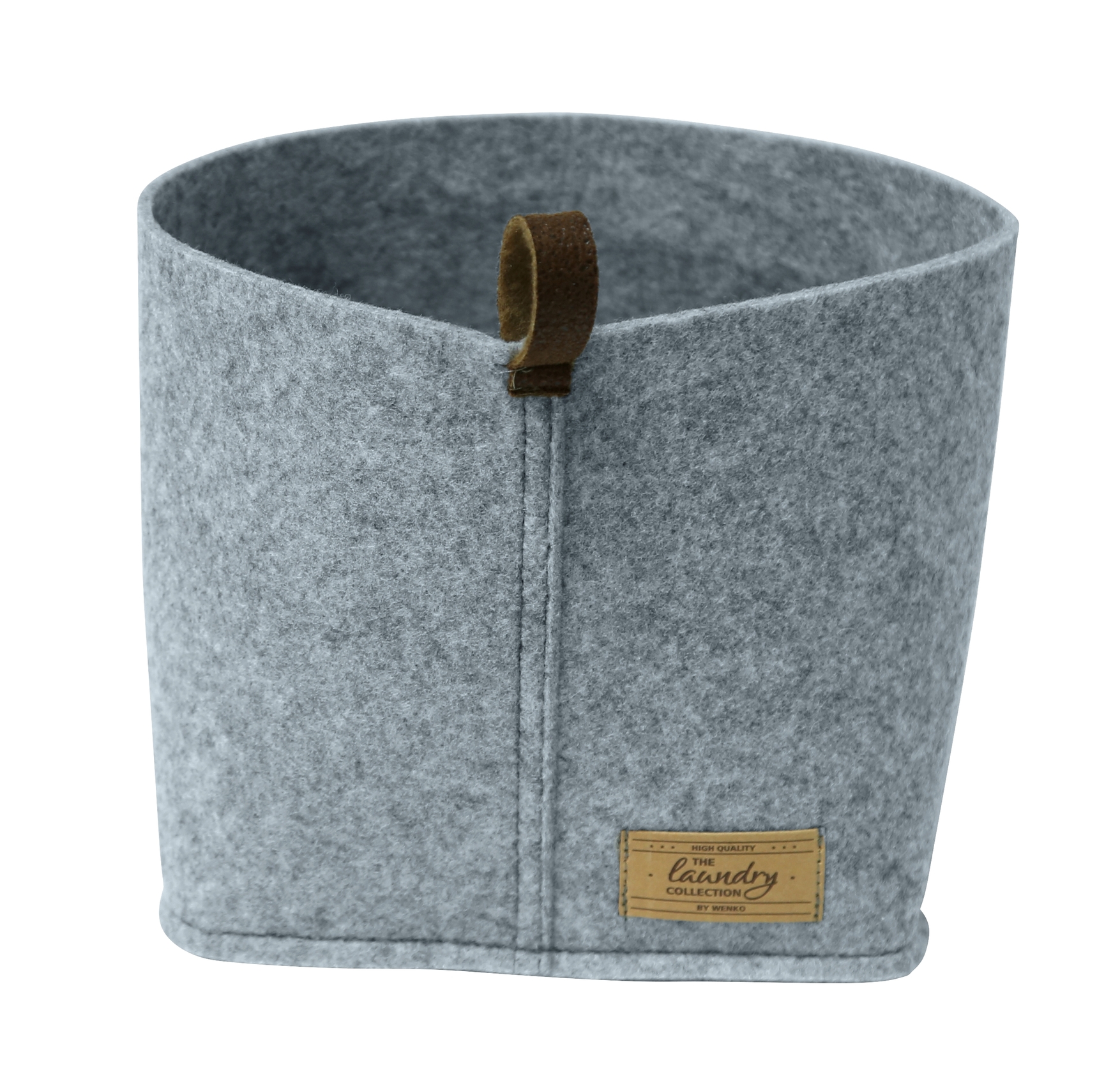 Moderne filt kurv til en særligt attraktiv organisering i hele husstanden. Den kan anvendes fleksibelt i lukkede skuffer eller på åbne hylder. Kurven har en skandinavisk indretningsstil med særligt robuste materialer, 100 % polyester. Yderligere kurvestørrelser fra Feli-serien fra WENKO er tilgængelige. Målene er 18 cm i bredden, 13 cm i højden og 12 cm i dybden, og med en hævet kant er højden 17 cm. Den kommer i grå.