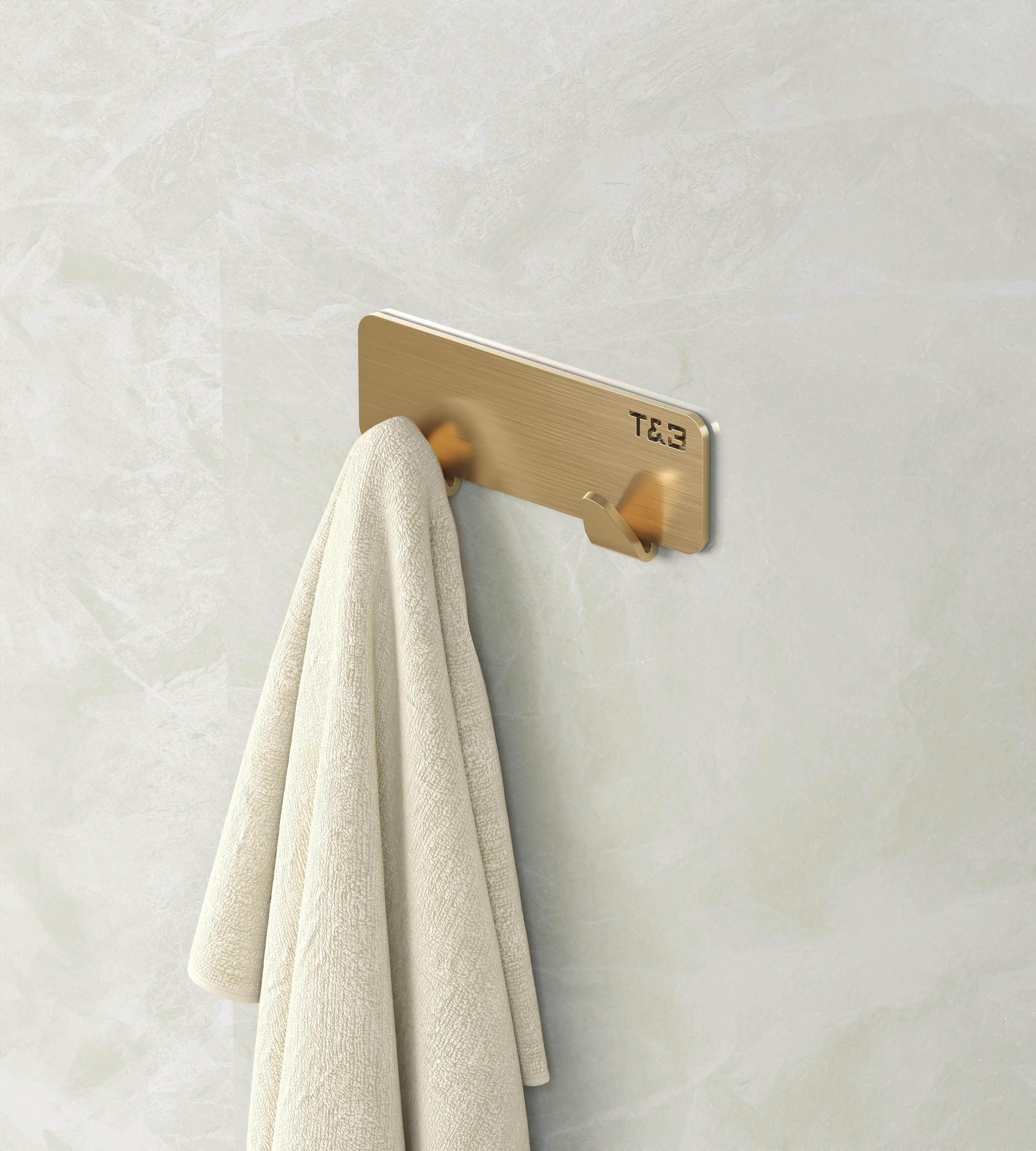 Opgrader din badeværelsesindretning med den stilede T&B aluminium håndklædeholder – en perfekt kombination af stil og funktionalitet. Denne elegante knagerække med tre kroge tilbyder en praktisk og diskret løsning, der sikrer stor stilrenhed og optimal opbevaring til dine håndklæder og badekåber.