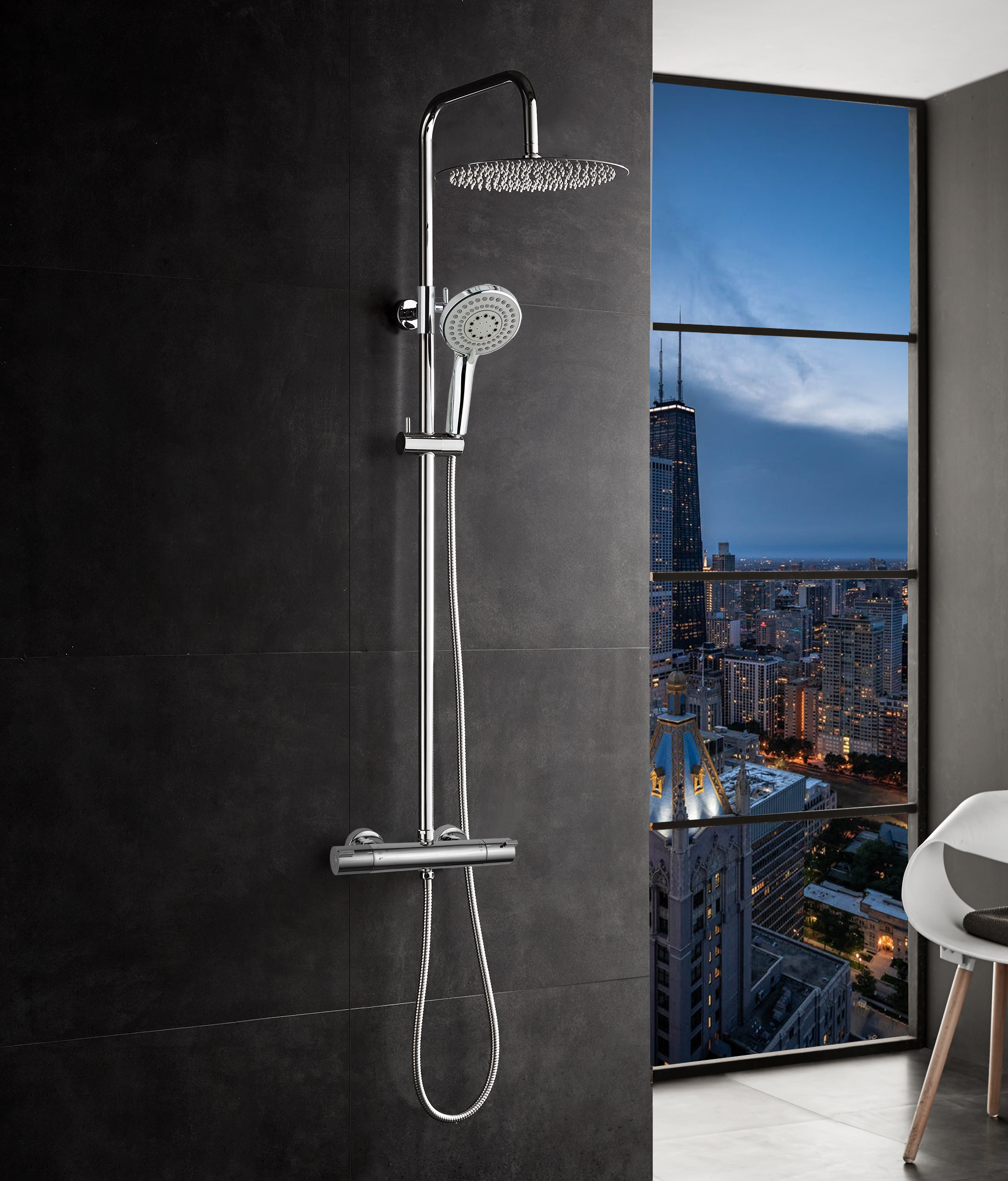 Bluerain luksus brusesæt bringer velvære ind i hverdagen, når det gør badet til en sand spaoplevelse. Brusesættets stilrene design og kromfarvede finish sikrer et æstetisk flot look på badeværelset, hvor Bluerain tilbyder en pause fra hverdagens travlhed, når den varme regn skyller ned over dig fra den 25 cm store luksus hovedbruser.