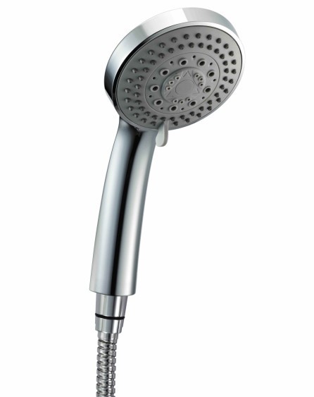 Det store brusehoved på Ø 100mm, sikrer et behageligt bad og med sine 5 skyllefunktioner, kan håndbruseren reguleres nemt til enhver smag.
