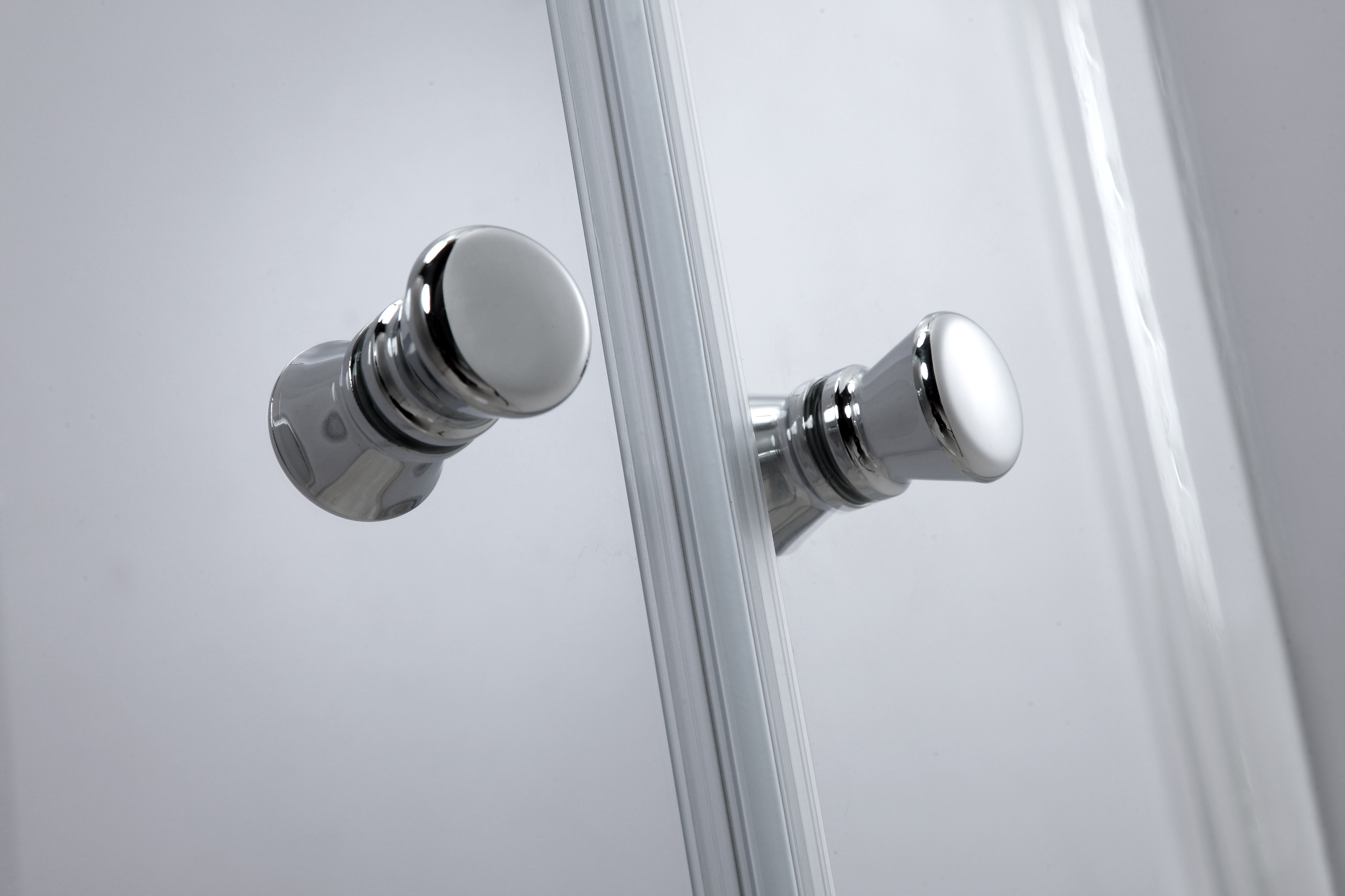 Dørene er udstyret med magnetlukning, og de er pladsbesparende, da de kan lukkes ind imod hinanden. På dørene sidder to håndtag i krom ABS, vægprofilerne af aluminium.