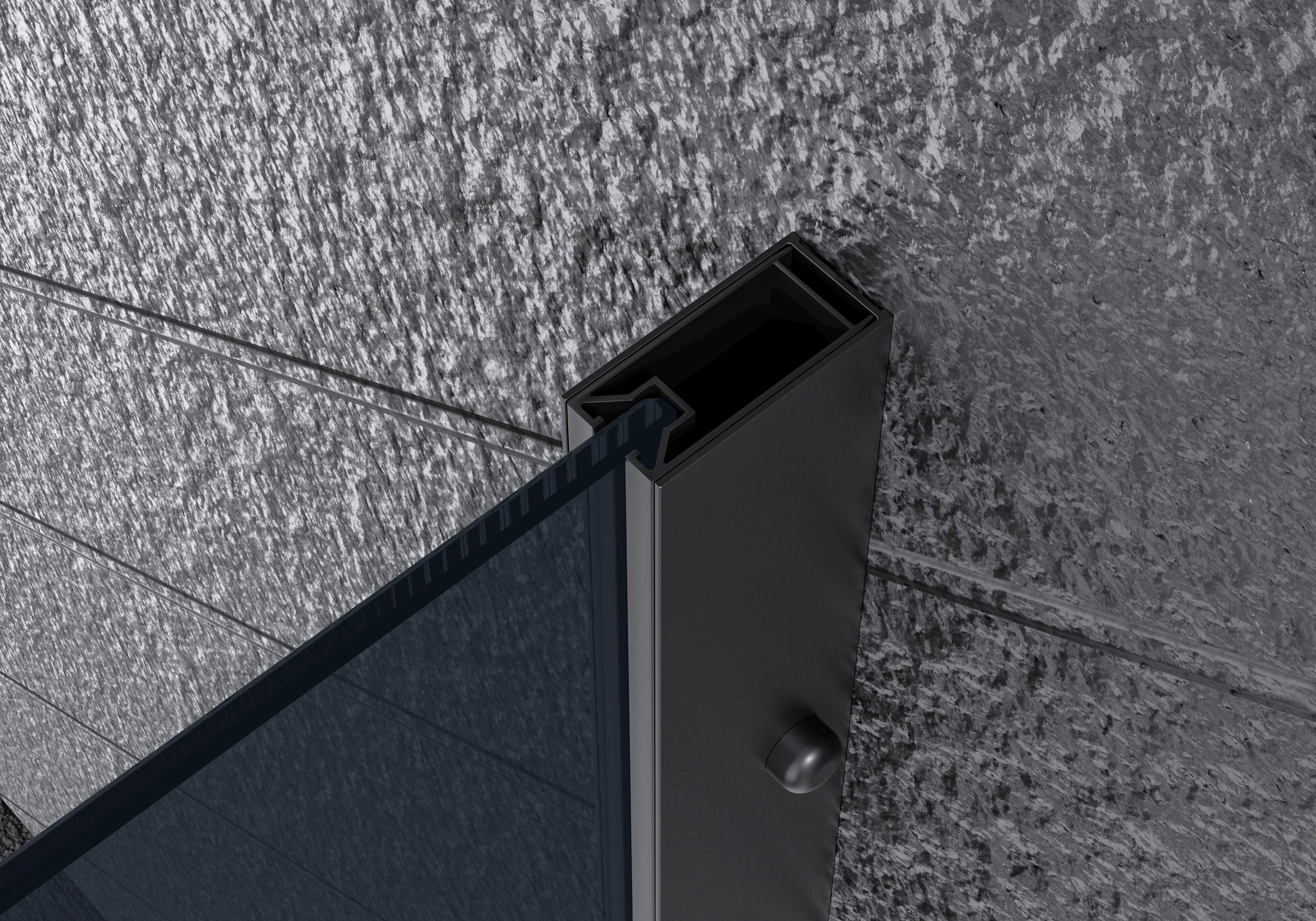 Brusevæggen leveres i røgfarvet sikkerhedsglas med en tykkelse på 6 mm. Profilerne er produceret af sort aluminium, og den medfølgende brusestang er af sort rustfrit stål. Brusestangen er ideel til ophæng af badeforhæng, og den har en længde på 118 cm og kan nemt justeres med en nedstryger. Profilen på væggen er 40 mm.