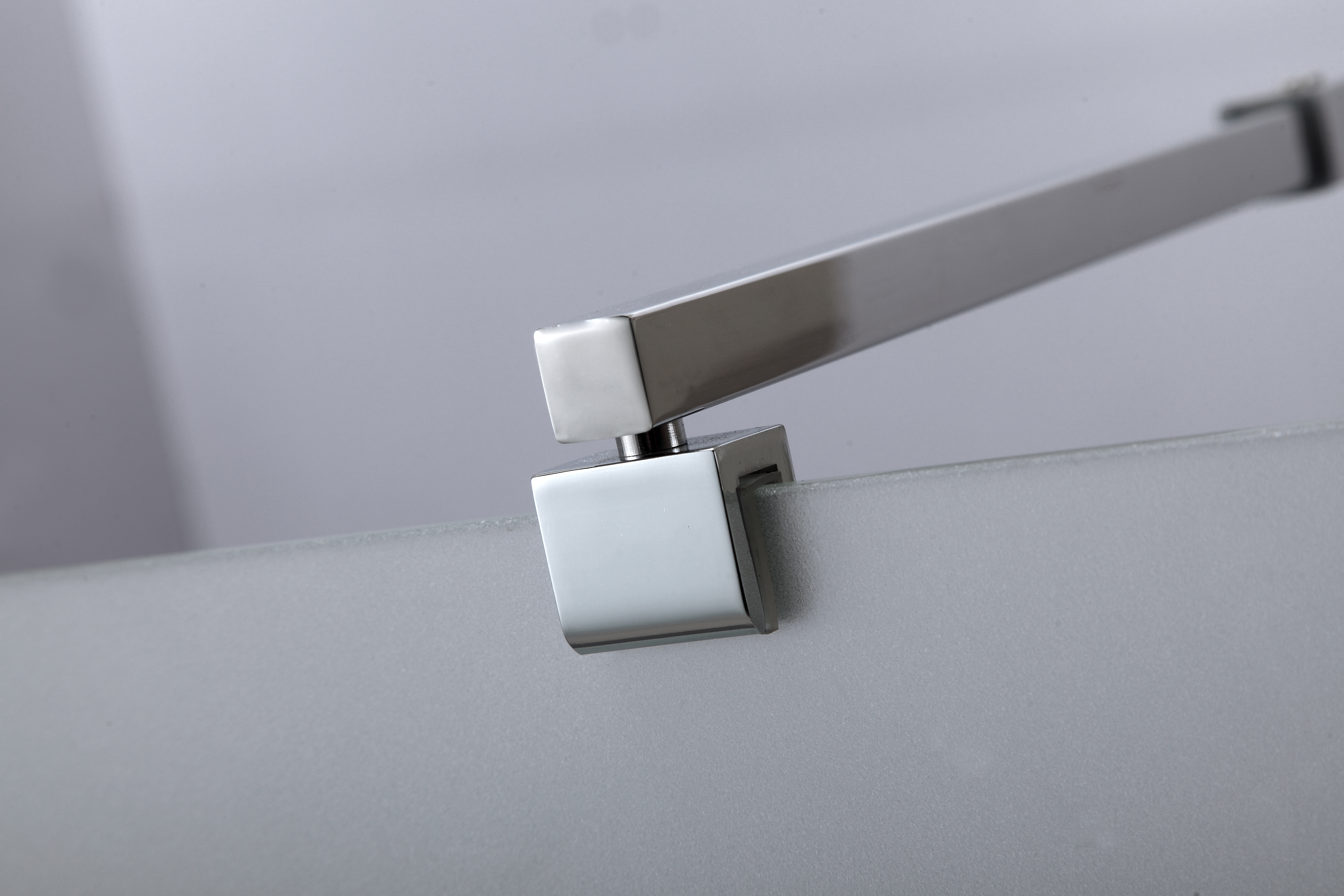 Brusevæggen leveres i frostet sikkerhedsglas med en tykkelse på 6 mm. Profilerne er produceret af aluminium, og den medfølgende brusestang er af rustfrit stål. Brusestangen er ideel til ophæng af badeforhæng, og den har en længde på 118 cm og kan nemt justeres med en nedstryger. Profilen på væggen er 40 mm.