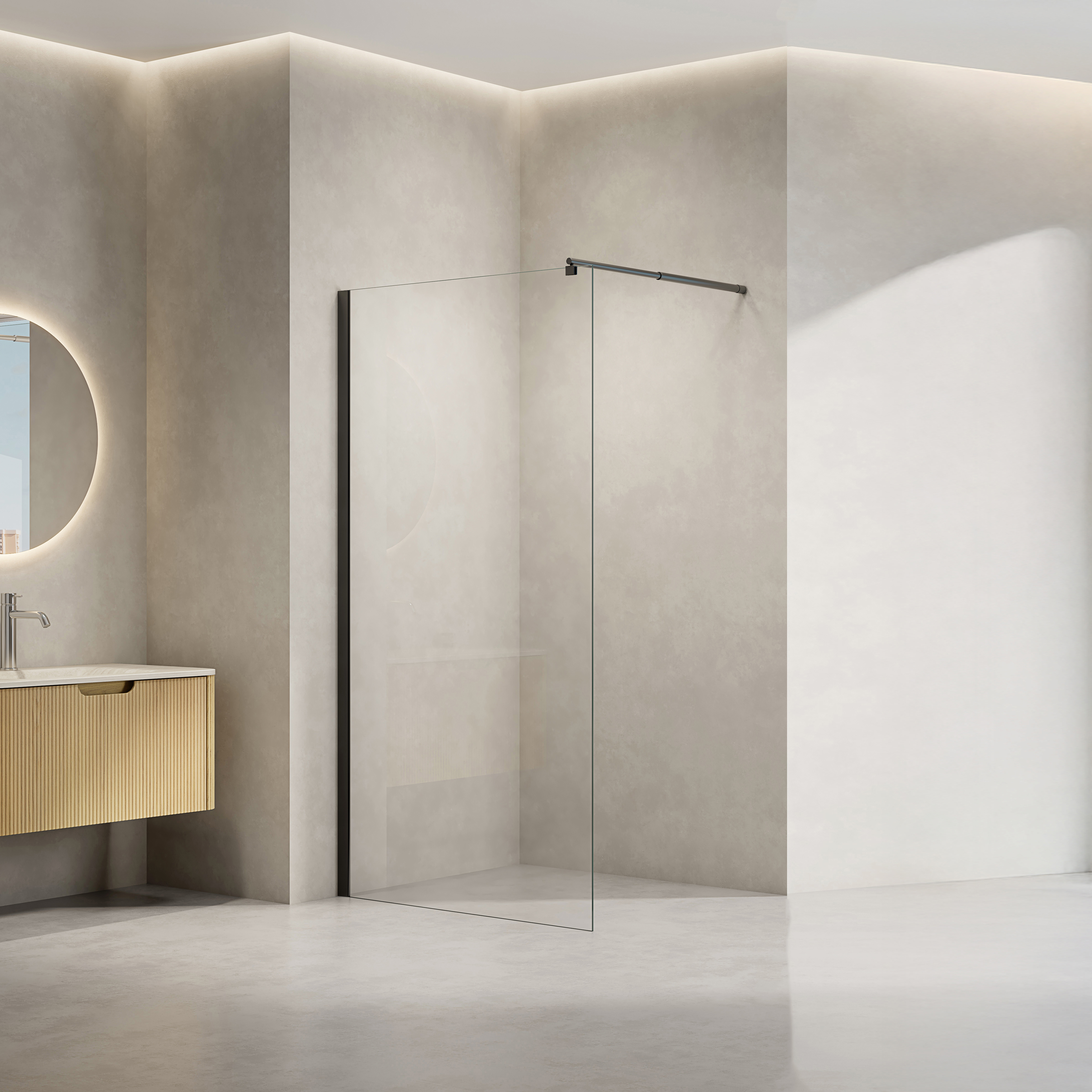 Giv dit badeværelse et løft med Bergen brusevæg, der beriger dit baderum med en klassisk og simpel stil. Brusevæggens mat sorte profiler og klare glas, udgør et rolig element i din badeværelsesindretning.
