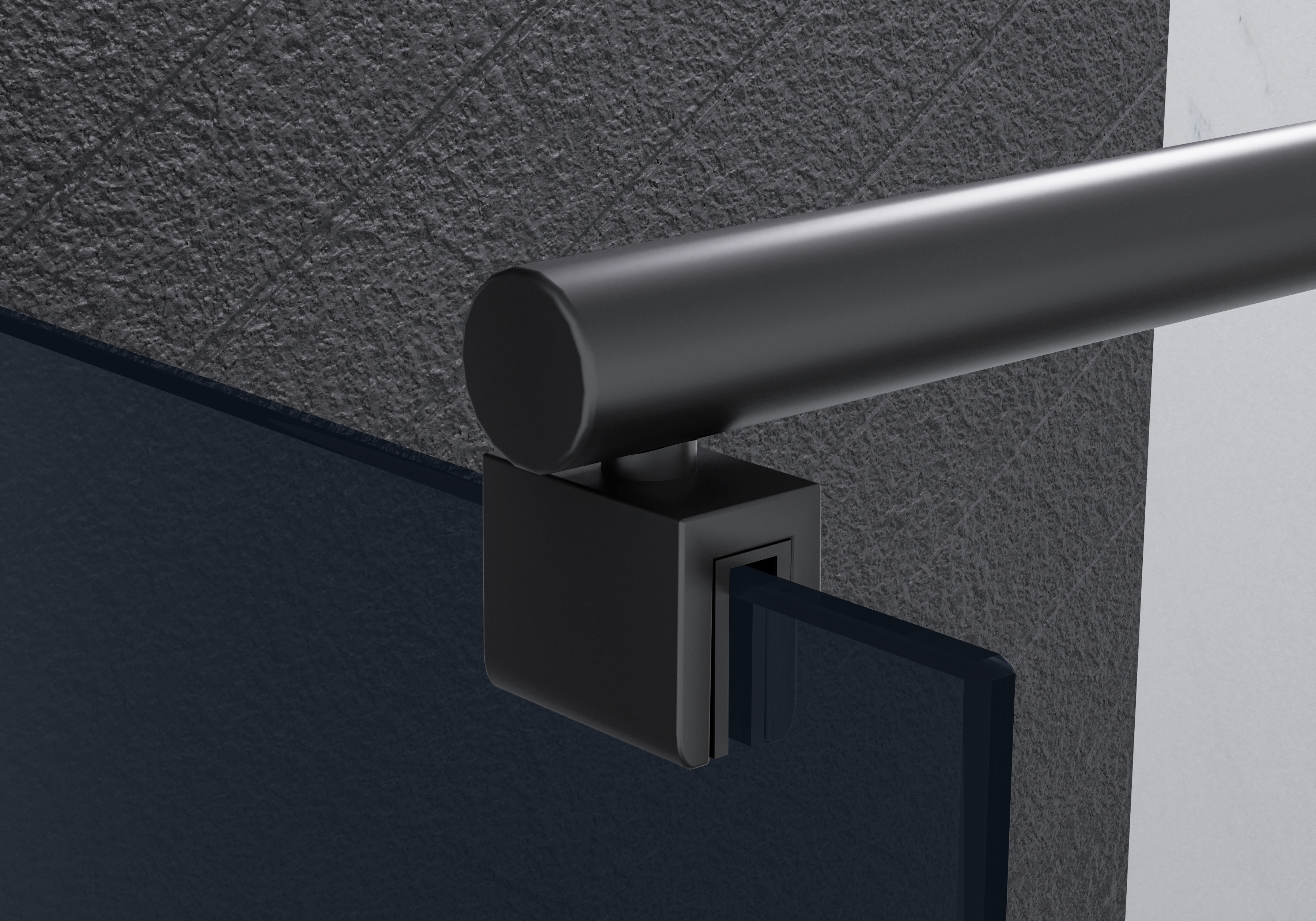 Brusevæggen leveres i røgfarvet sikkerhedsglas med en tykkelse på 6 mm. Profilerne er produceret af sort aluminium, og den medfølgende brusestang er af sort rustfrit stål. Brusestangen er ideel til ophæng af badeforhæng, og den har en længde på 118 cm og kan nemt justeres med en nedstryger. Profilen på væggen er 40 mm.