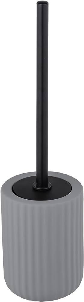 Moderne toiletsæt i mat grå med rillet soft-touch overflade. Inkluderer sort toiletbørste med udskifteligt børstehoved på Ø 7,5 cm og et fleksibelt plastikdæksel som skærm. Beholderen er lavet af høj kvalitet keramik, og børstehåndtaget er i rustfrit stål. Mål (B/D x H): Ø 11,5 x 42 cm.