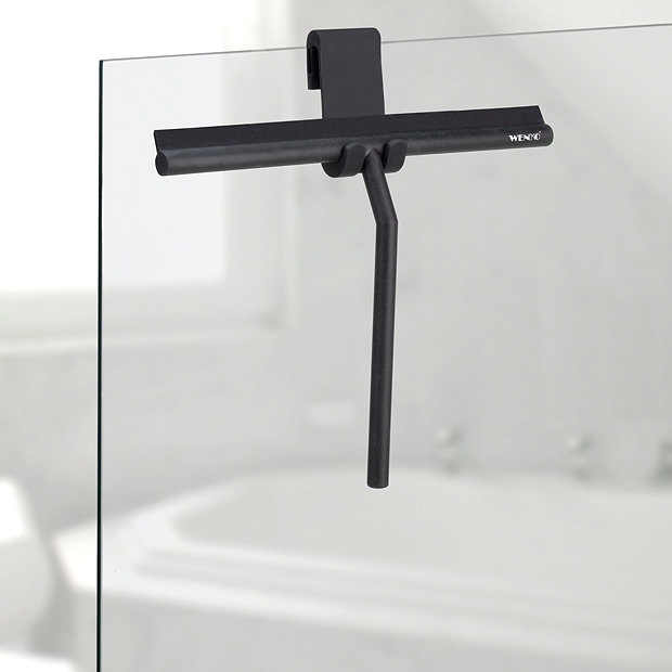 Denne bruseskraber i sort er perfekt til rene vinduer og sikrer stribefri aftørring af brusevægge. Den ekstra brede aftørringsflade på 32 cm og en højde på 25 cm gør det let at dække større overflader. Skraberen leveres med en praktisk ophængsanordning til brusekabinen. Målene med krogen er 32 cm i bredden, 30 cm i højden og 4,5 cm i dybden. Den er fremstillet af rustfrit stål og silikone for optimal holdbarhed og funktionalitet.