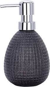 Genopfyldelig sæbedispenser til portioneret dosering af flydende sæbe eller lotion. Lavet af høj kvalitet keramik kombineret med en krom dispenser. I stilfuld antracit med tekstureret overflade. Fyldekapacitet på ca. 390 ml. Måler 9,5 cm i bredden, 16 cm i højden og 9 cm i dybden.