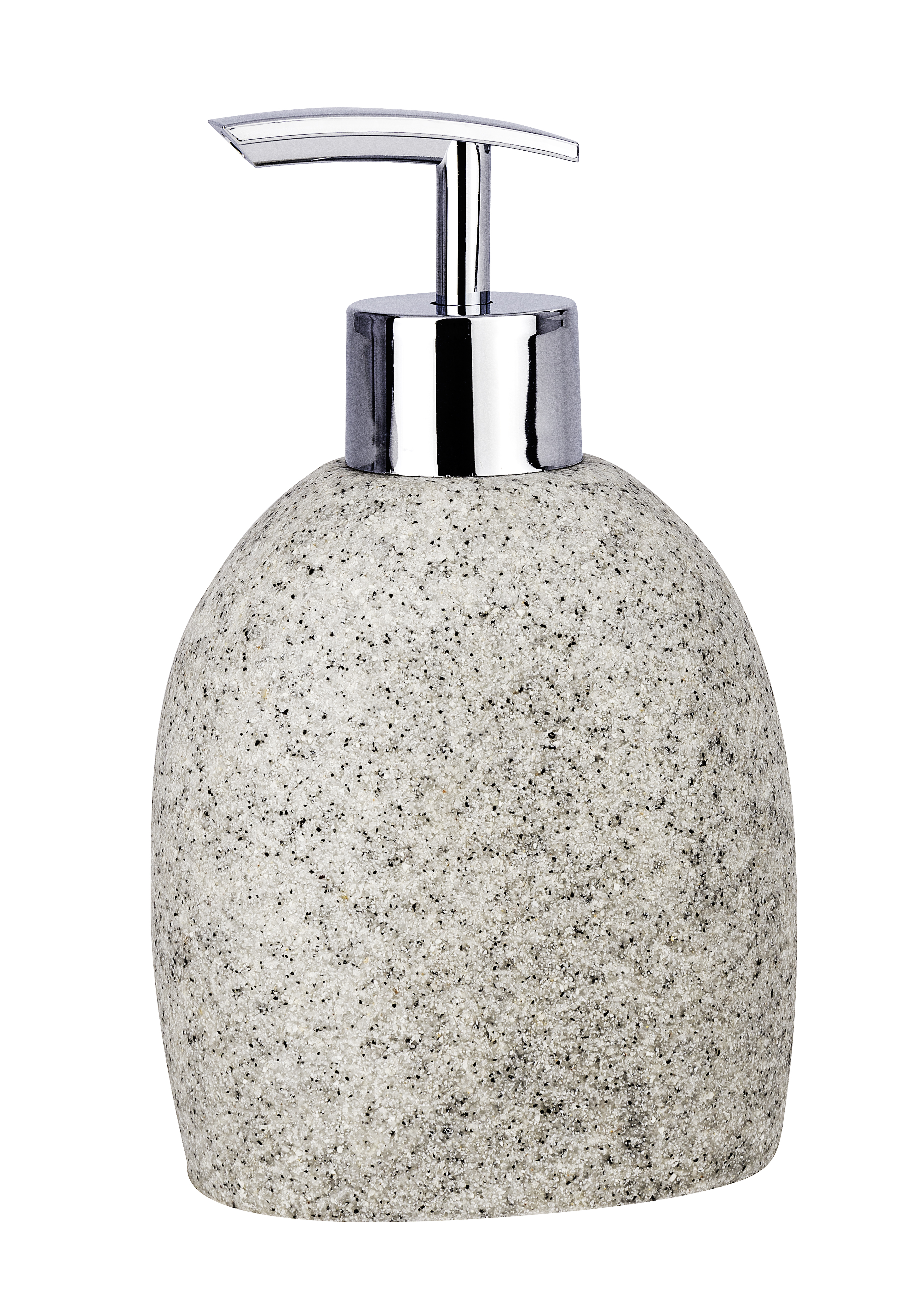 Denne sæbedispenser tilhører badeværelsesserien Puro, der bringer en enkel elegance til ethvert badeværelse. Sæbedispenseren har en oval form og leveres i et lysegråt sten-look. Produktet er lavet af polyresin af høj kvalitet. Dispenseren kan genopfyldes med 295 ml flydende sæbe eller lotion, og den ønskede mængde pumpes ud ved at trykke på doseringspumpen. Sæbedispenseren kan med fordel matches med det resterende badværelsestilbehør fra Puro-serien for at fuldende looket på badeværelset.